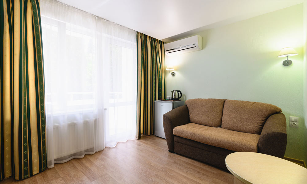 Мебель: Две раздельные односпальные кровати или двуспальная кровать, шкаф, тумбочки, двуспальный диван.
