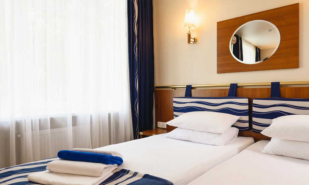 Мебель: Две раздельные односпальные кровати, шкаф, тумбочки.