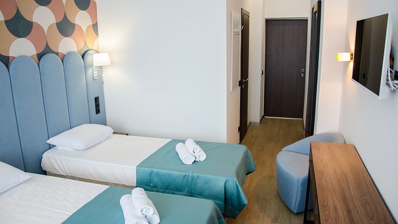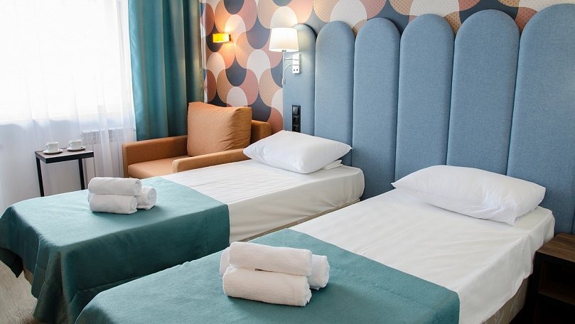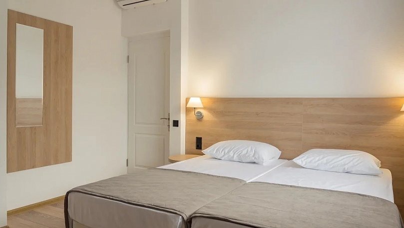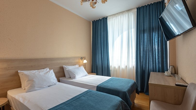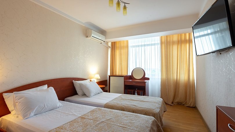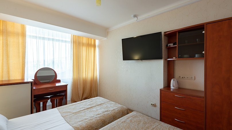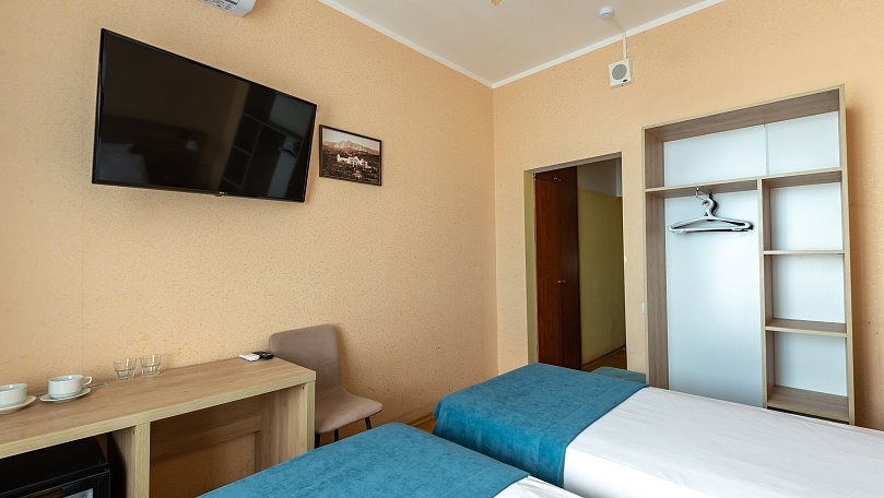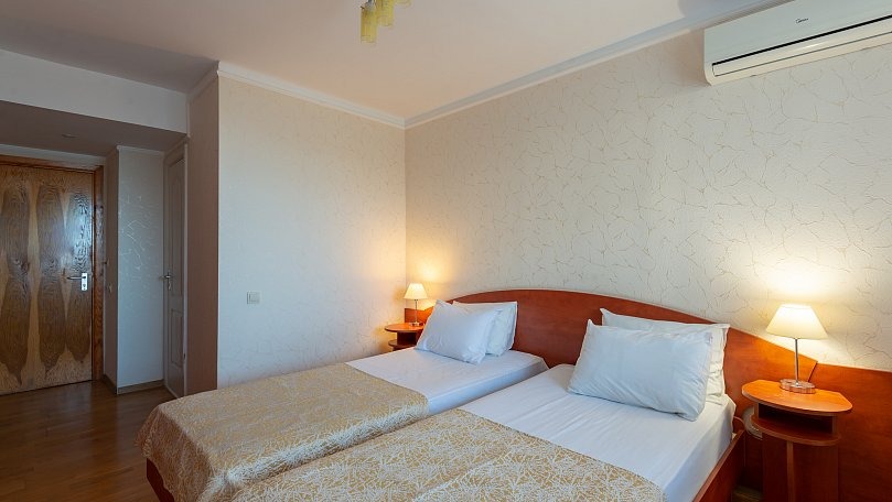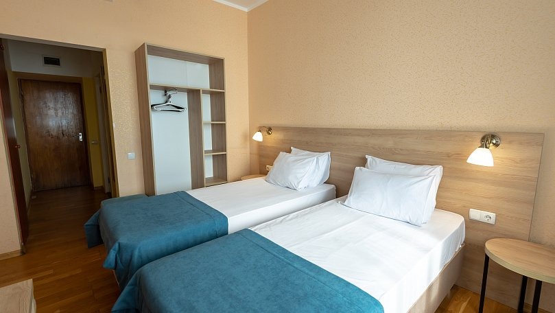 Мебель: Две односпальные кровати (при необходимости сдвигаются), прикроватные тумбы, шкаф для одежды.