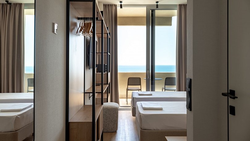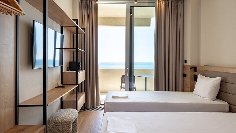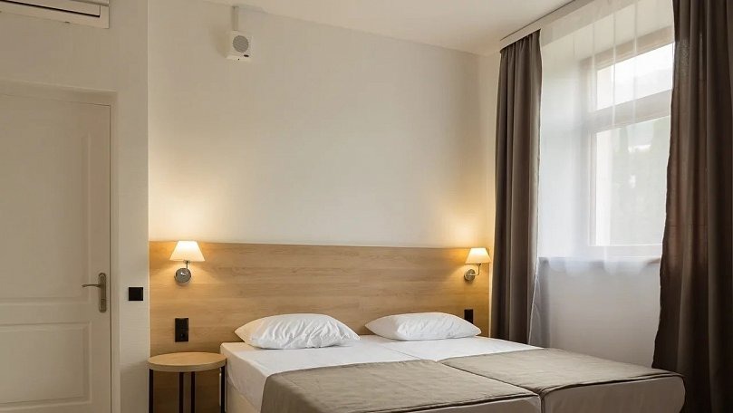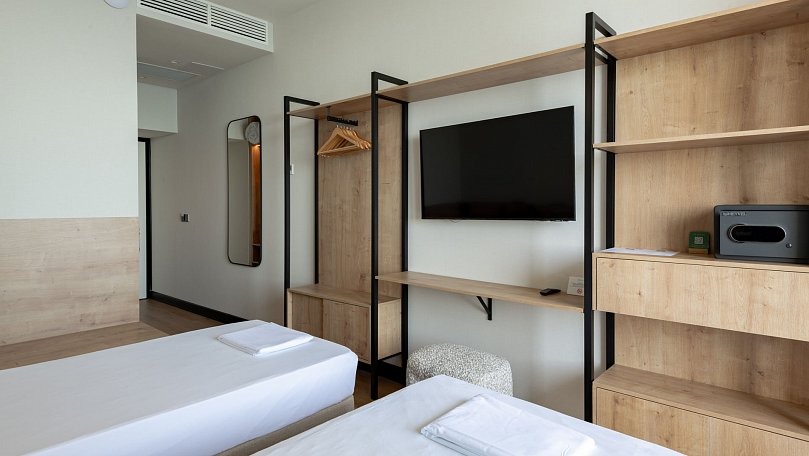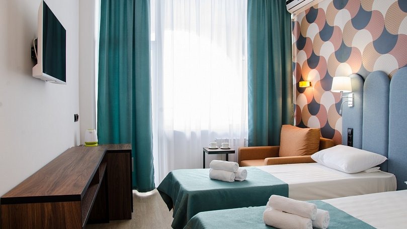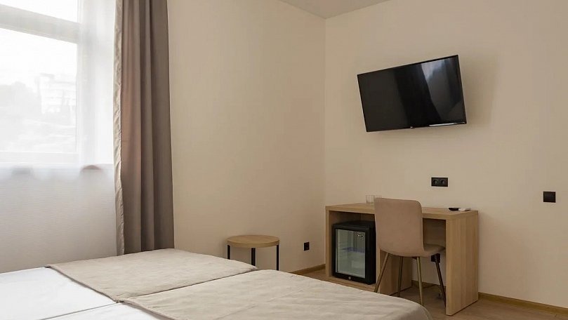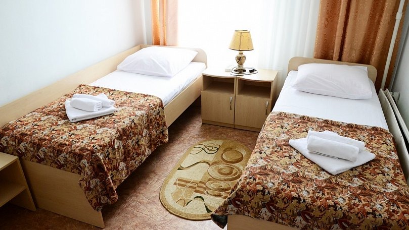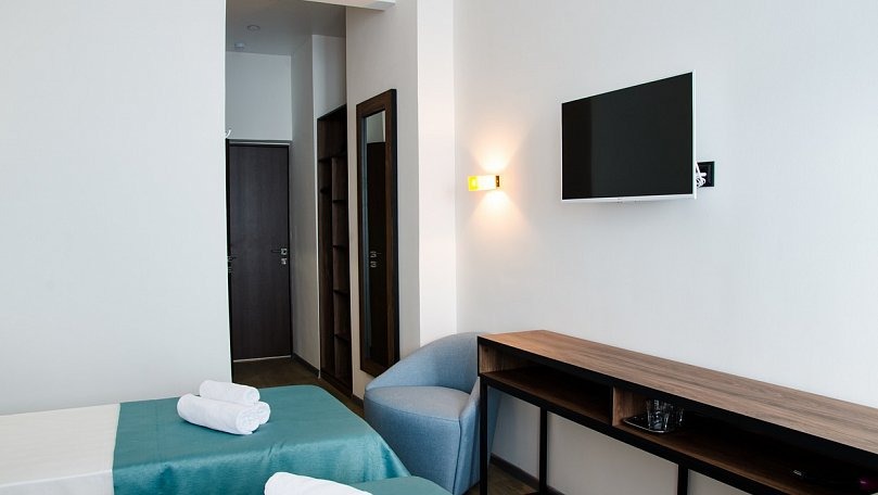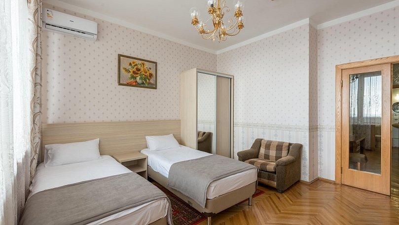 Мебель: Две односпальные кровати (при необходимости сдвигаются), прикроватные тумбы, шкаф для одежды.