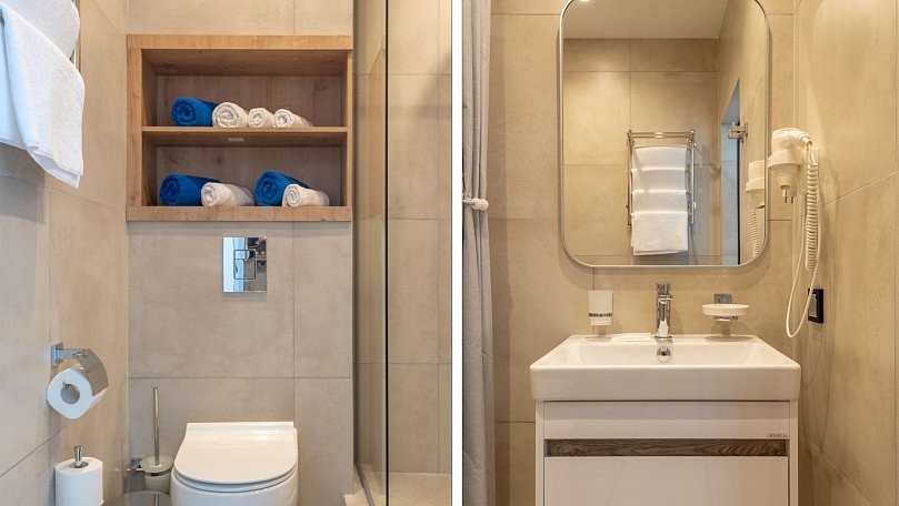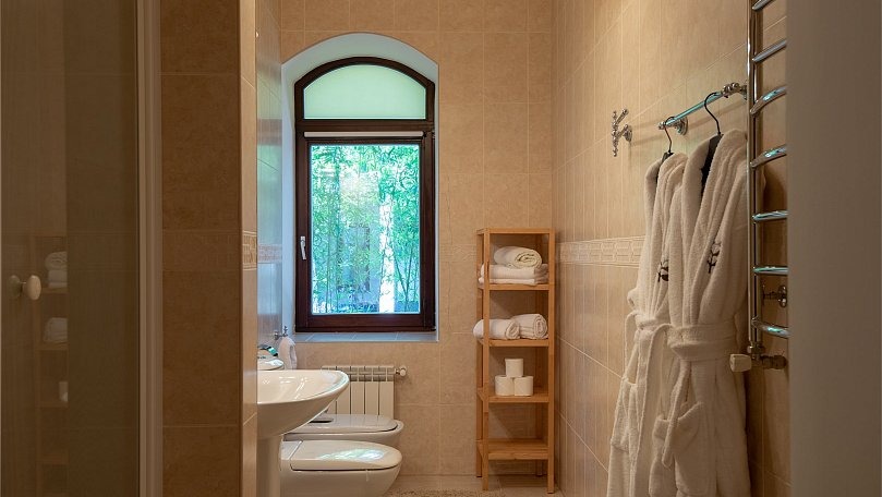 Санузел: Два санузла с душем или ванной, унитазом, умывальником и биде.