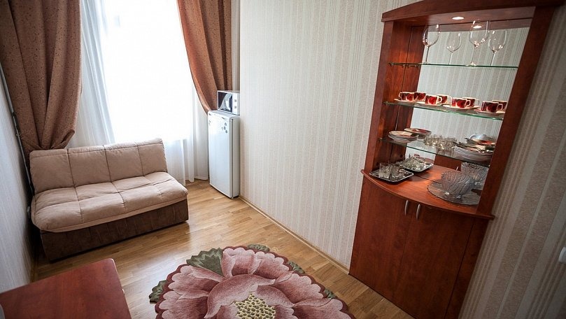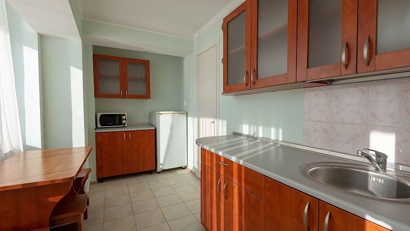 Оборудование: Кондиционер, холодильник, телевизор, электрический чайник, микроволновая печь, утюг с гладильной доской, чайный набор, набор кухонной посуды.