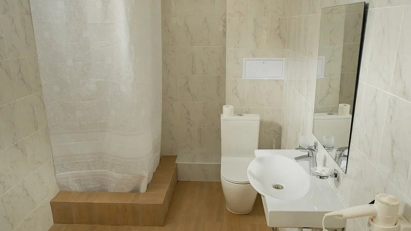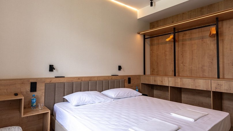 Оборудование: Кондиционер, телевизор, кабельное телевидение, холодильник, чайник, стаканы, светильники, Wi-Fi в общественных местах, кулер в корпусе.