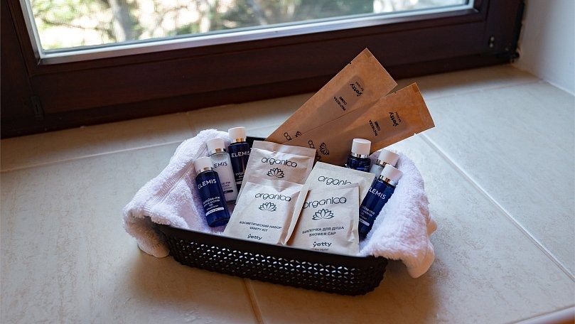Сервис: Банные полотенца, косметические средства, фен.
