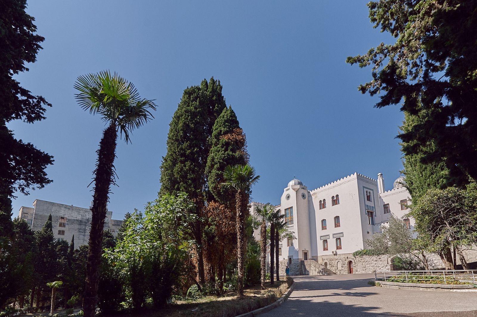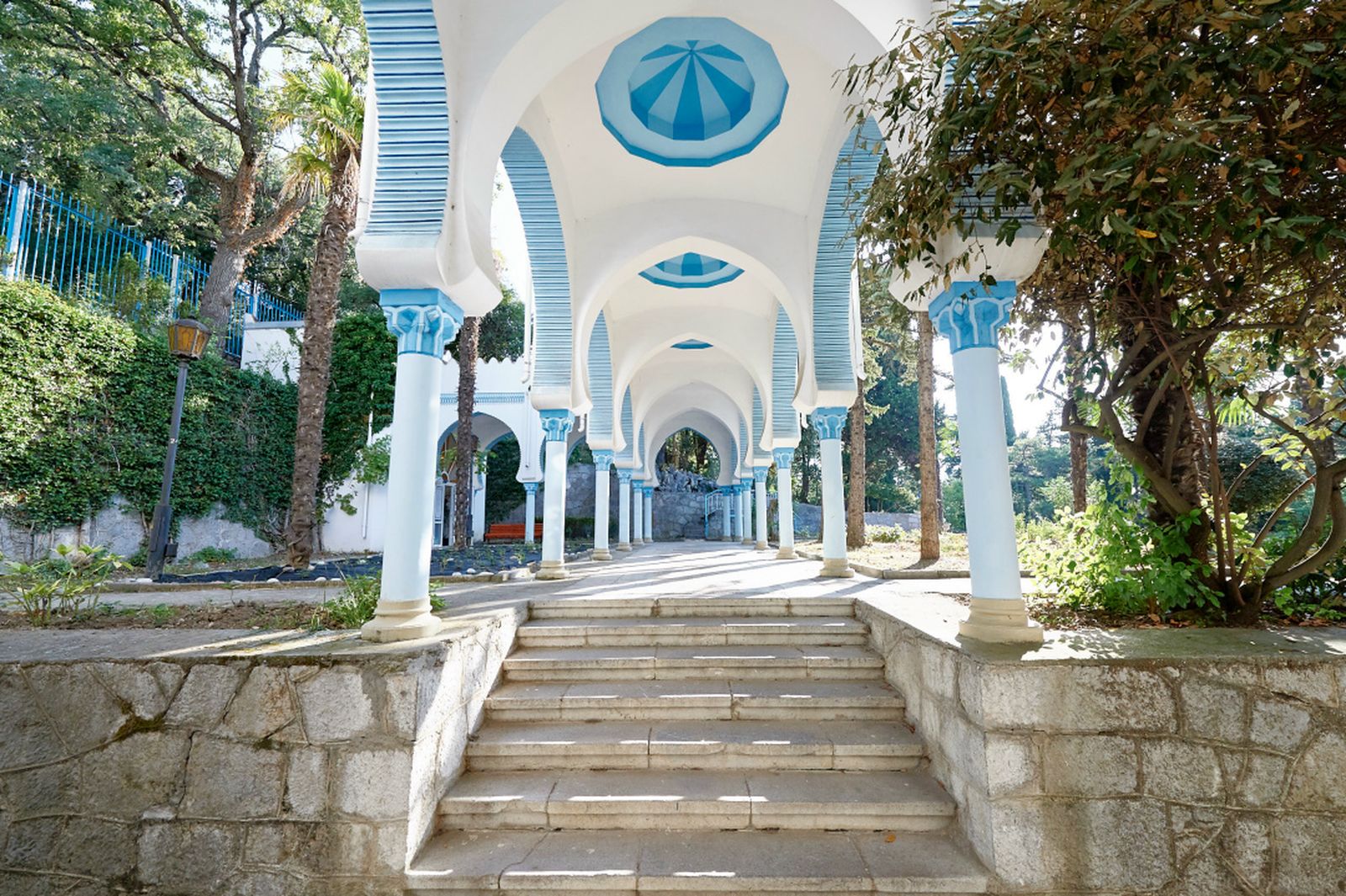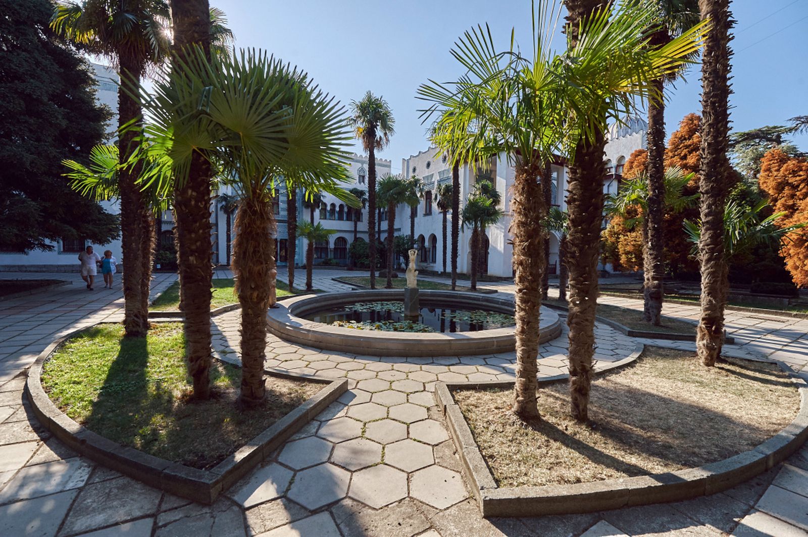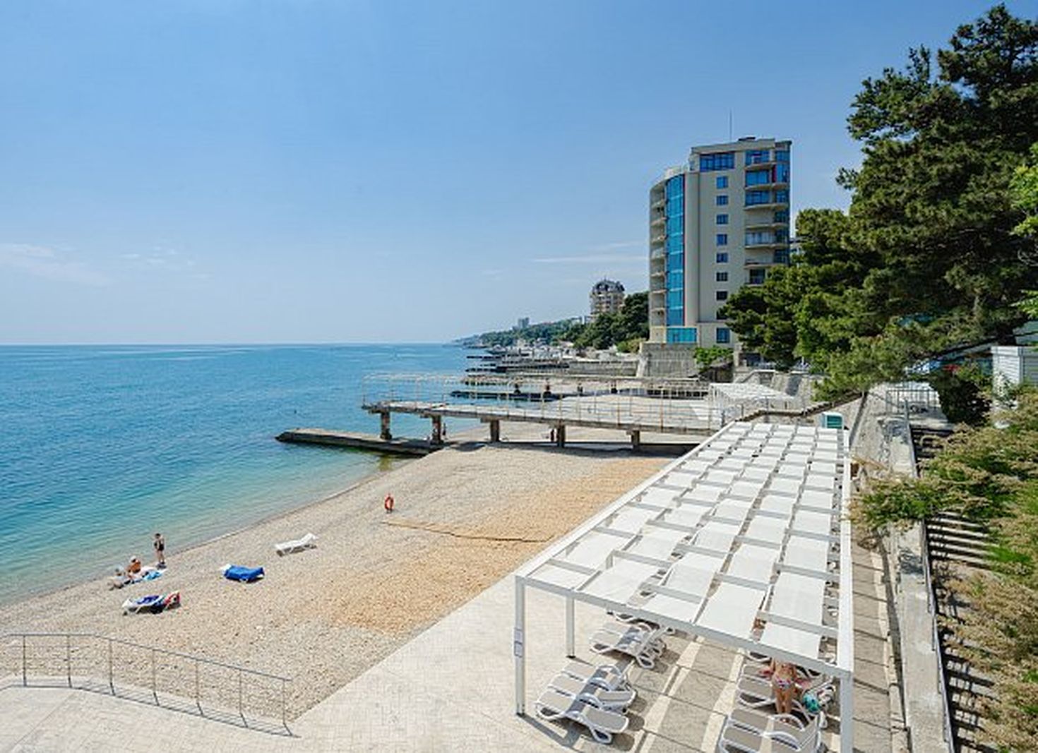 Территория санатория «Дюльбер» включает собственный пляж, бассейны с морской водой, медицинский центр с диагностической базой и зону для прогулок.