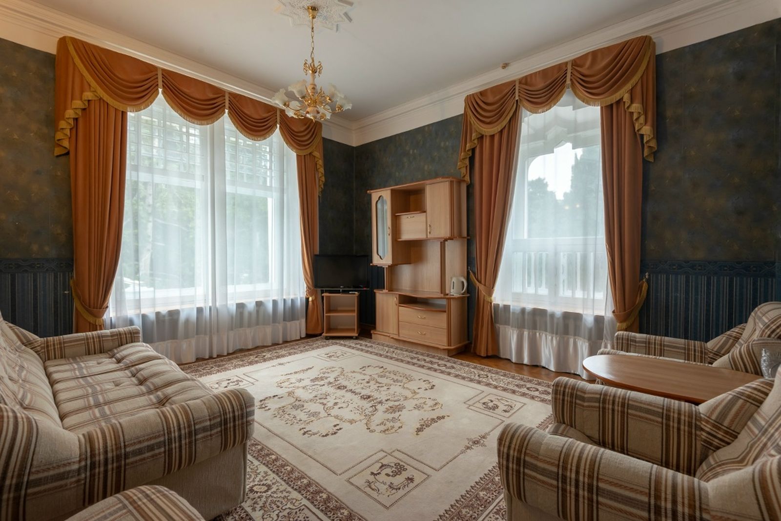 Санаторий принимает гостей круглый год, с учетом сезонных особенностей — например, открытый бассейн работает с июня по сентябрь. Атмосфера здесь сочетает историческую аутентичность с современным комфортом.