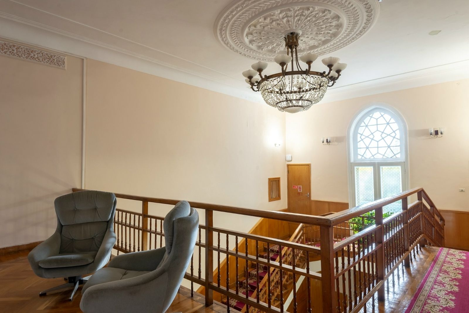 Второй корпус, возведенный в 1938 году, повторяет стиль дворца, но с элементами советской эпохи, включая надпись на арабской вязи из Конституции СССР о праве на отдых.