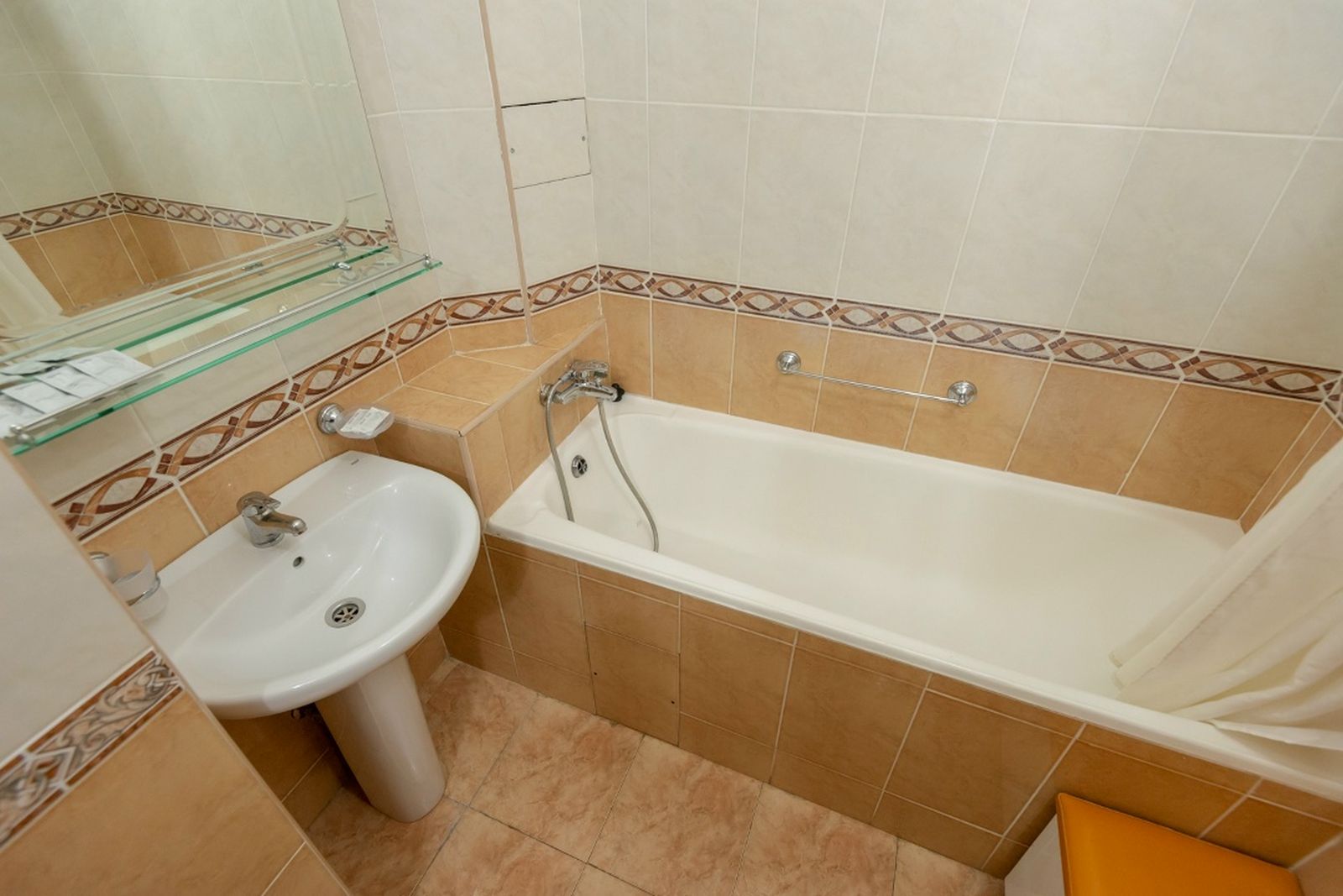 Оборудование: Кондиционер, отопление, телевизор, кабельное ТВ, холодильник, чайник, чайный набор, набор посуды, светильники, Wi-Fi в общественных зонах, кулер в холле.