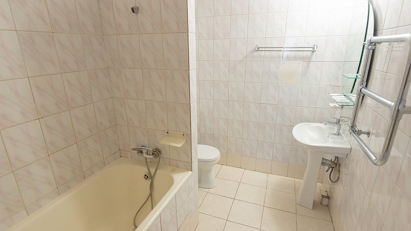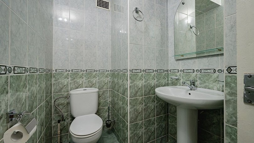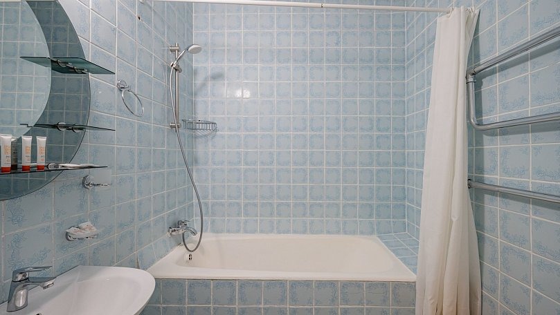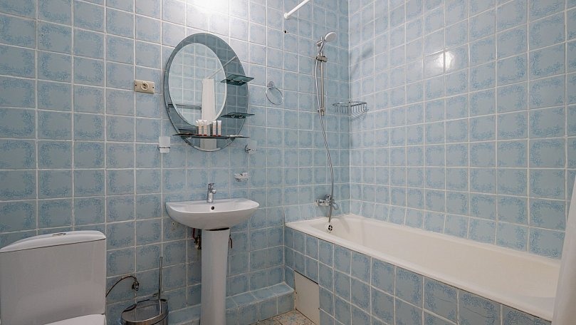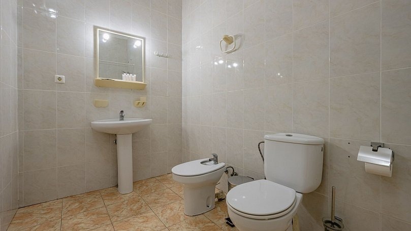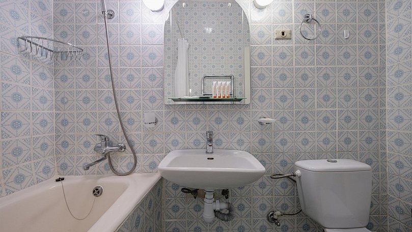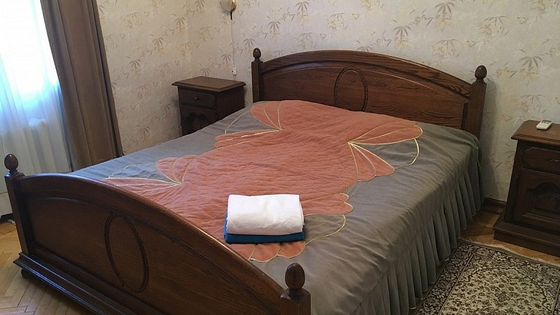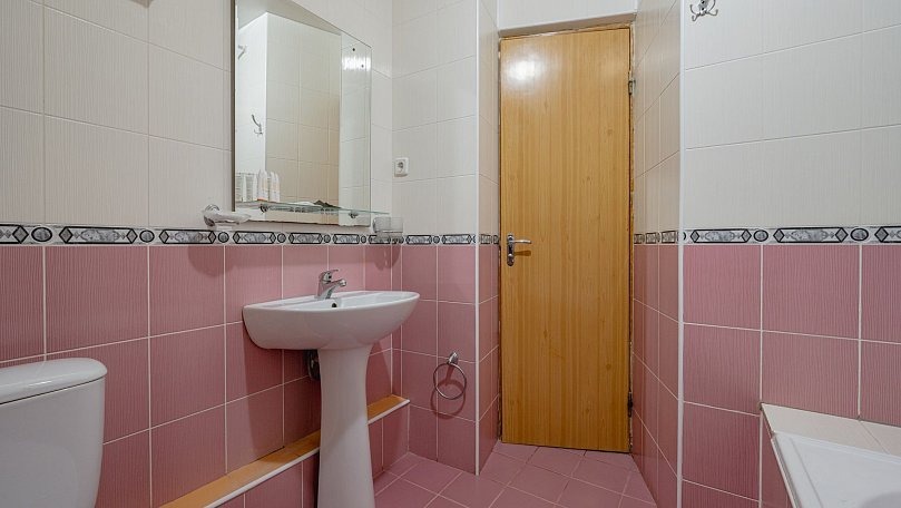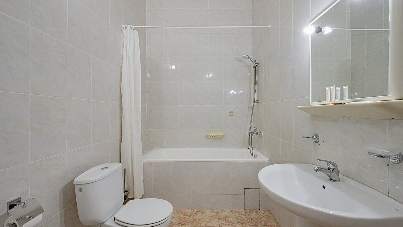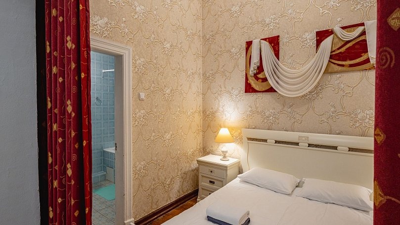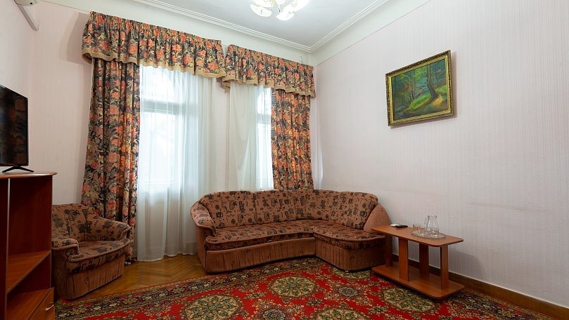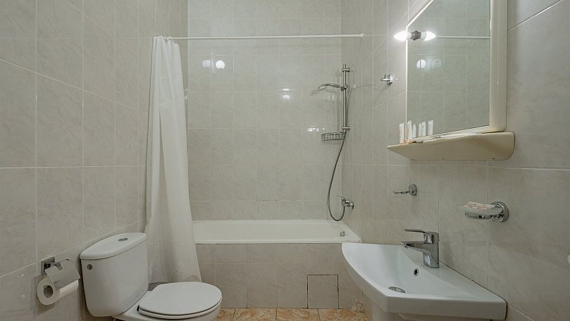 Мебель: Две односпальные или одна двуспальная кровать, диван, тумбы, туалетный столик, шкаф для одежды, вешалки, зеркало, сушилка для белья.