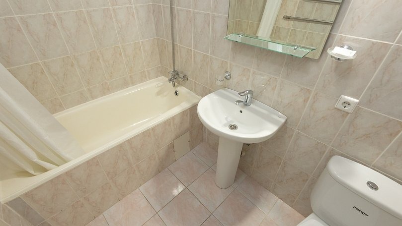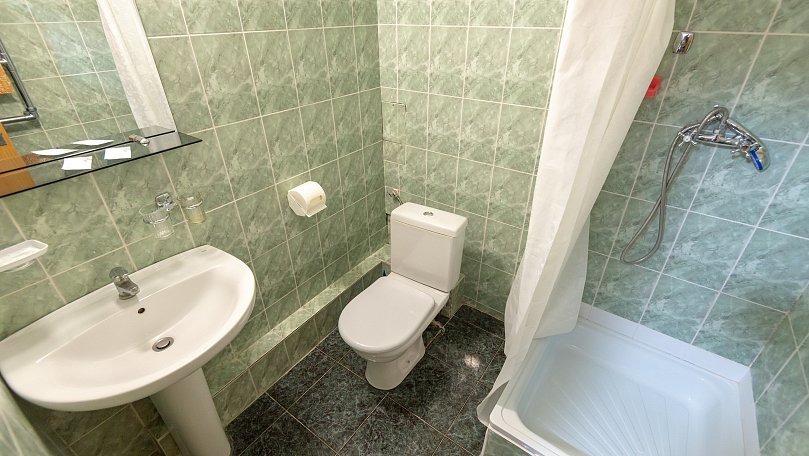 Оборудование: Кондиционер, отопление, телевизор, кабельное ТВ, холодильник, чайник, чайный набор, набор посуды, светильники, Wi-Fi в общественных зонах, кулер в холле.