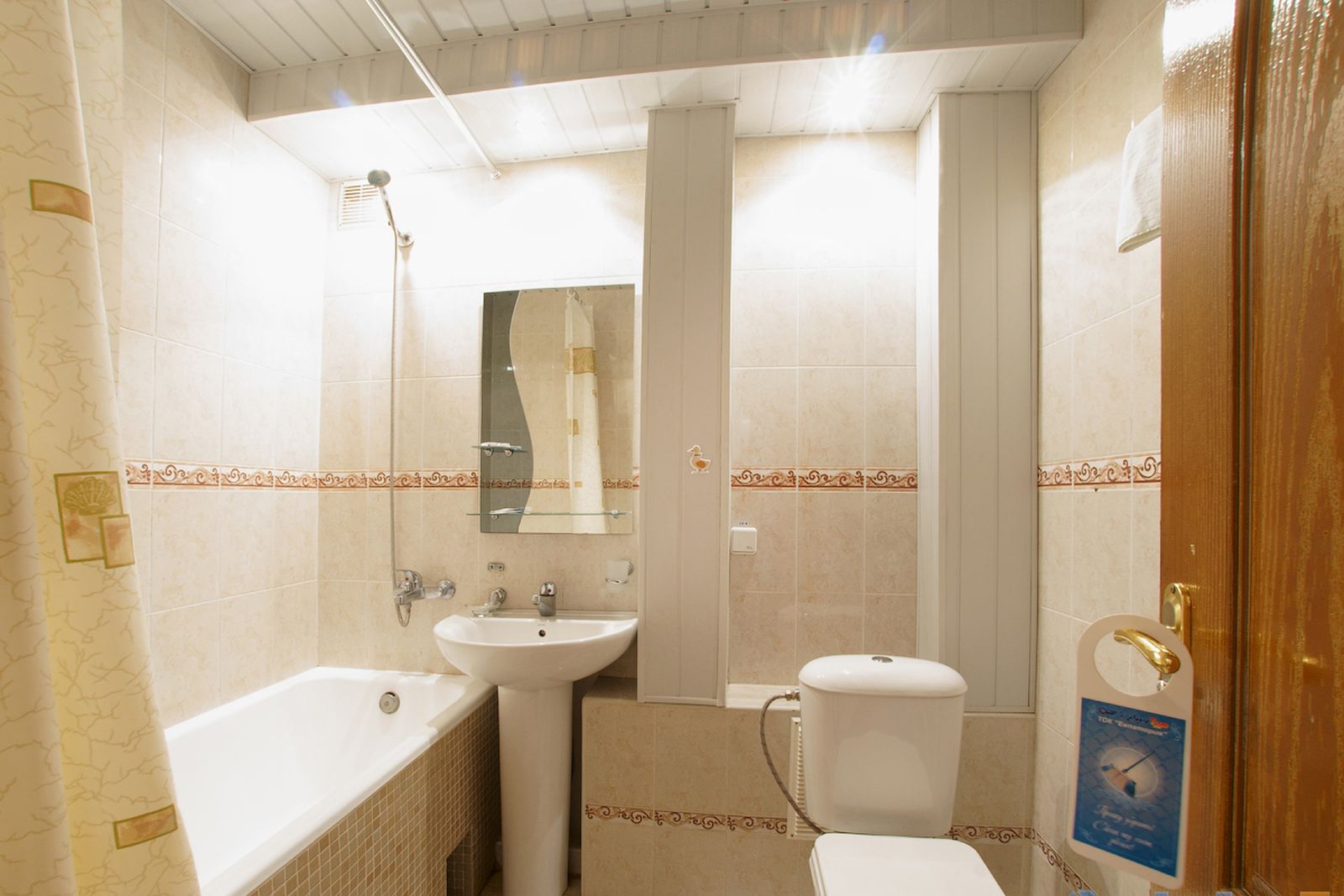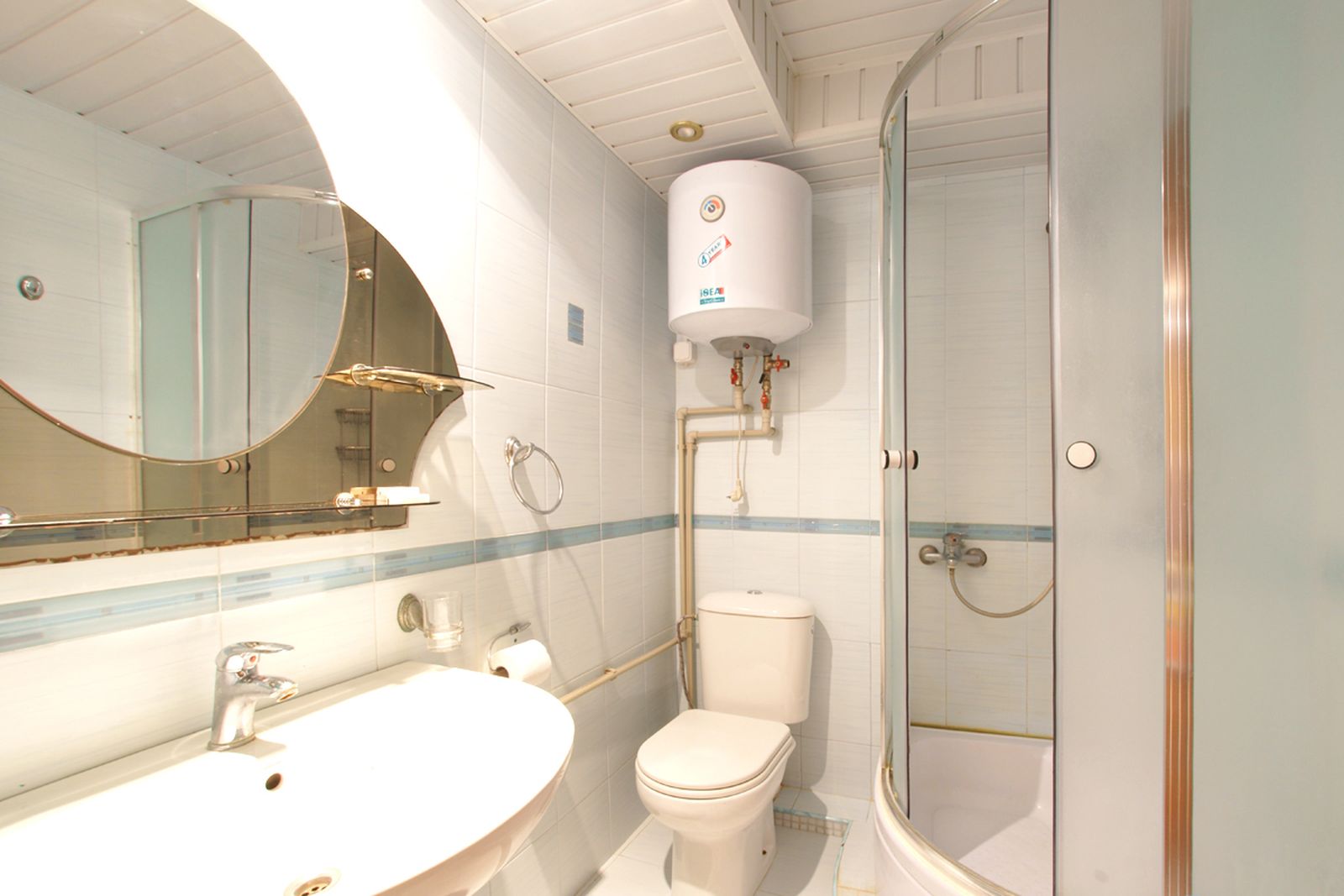 Санузел: Умывальник, унитаз, душевая кабина. Комплект полотенец, халат, шампунь, мыло, зубная щётка, зубная паста, гель, лосьон.