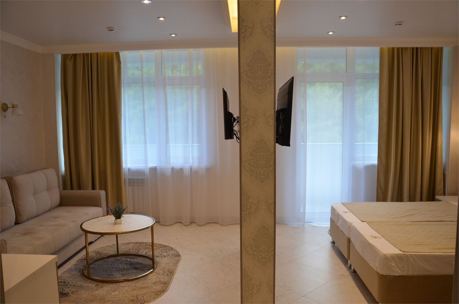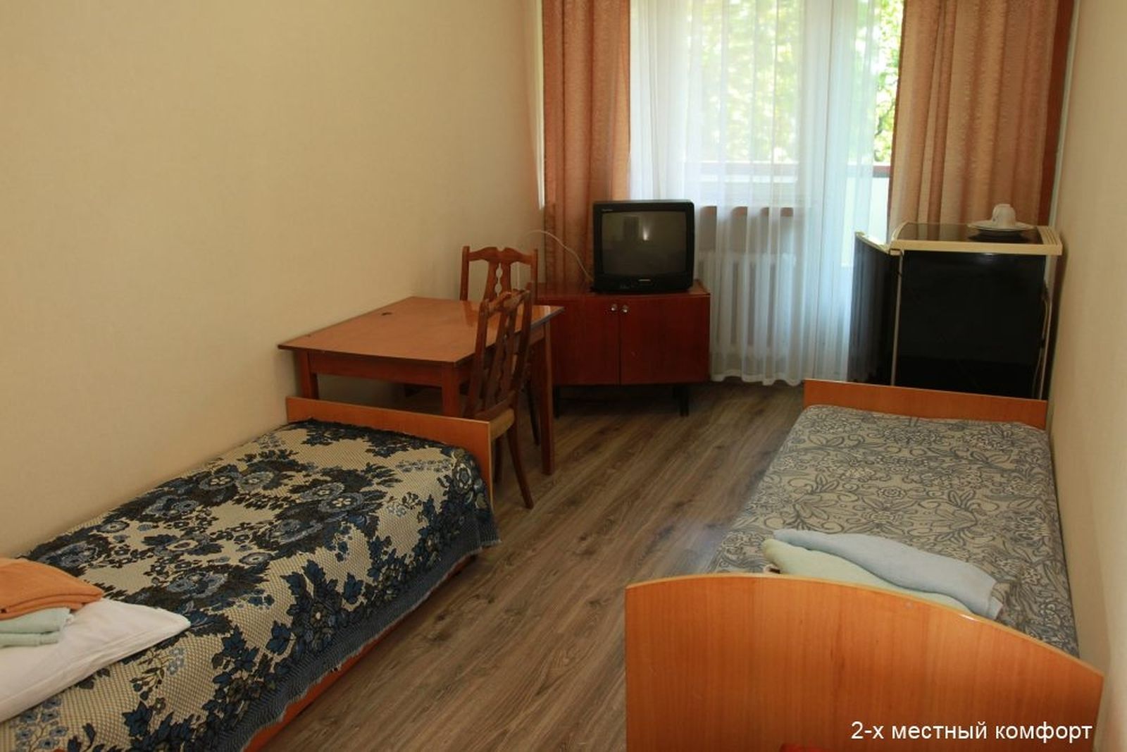 Комплекс включает 19 корпусов разной этажности. Есть все необходмо для комфортного проживания и отдыха во время лечения. На территории есть ресторан «Фонтан» с видом на парк, охраняемая парковка, Wi-Fi, прачечная.