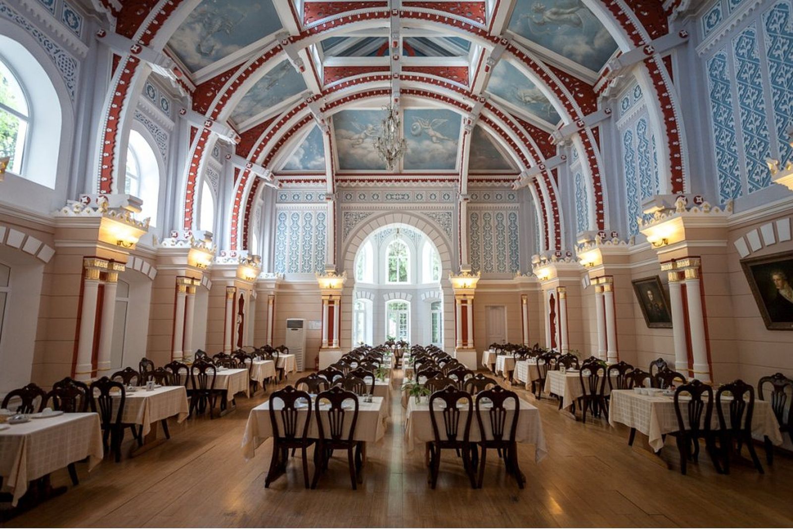 В столовой каждый прием пищи разный и вкусный, залы большие и чистые, есть даже отдел для детей