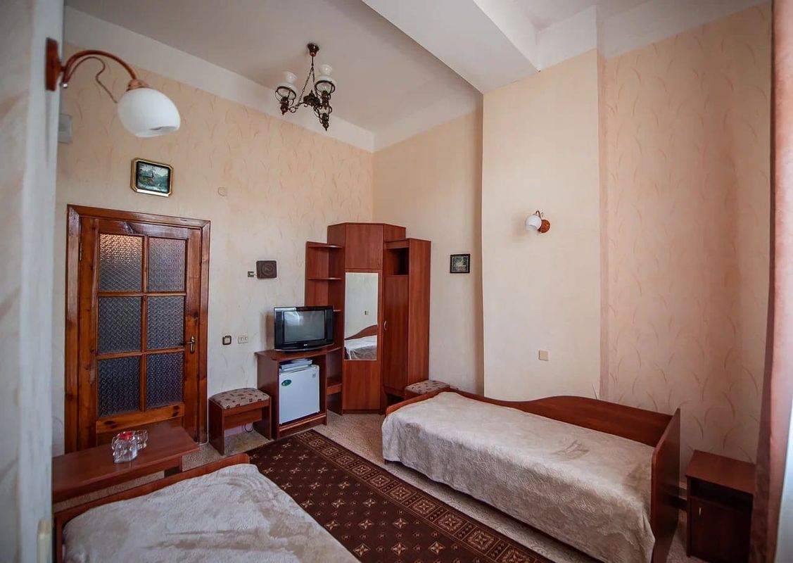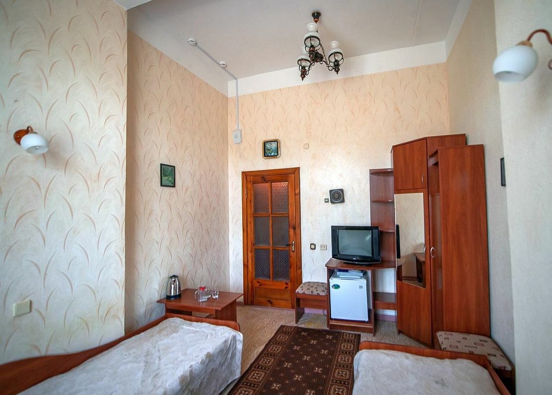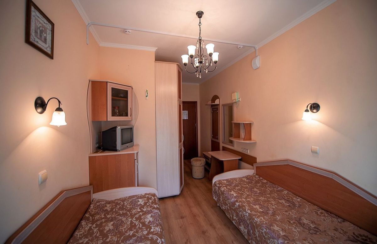 Мебель: Двуспальная кровать (в двухместных номерах) или три односпальные кровати (в трёхместных номерах).