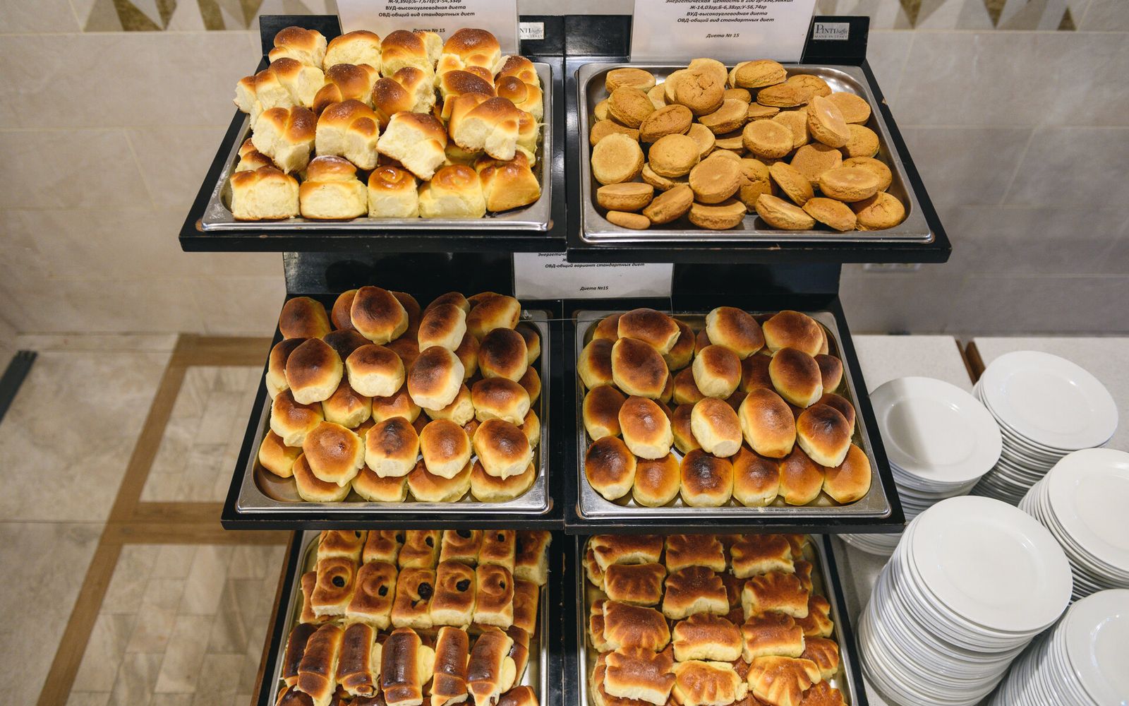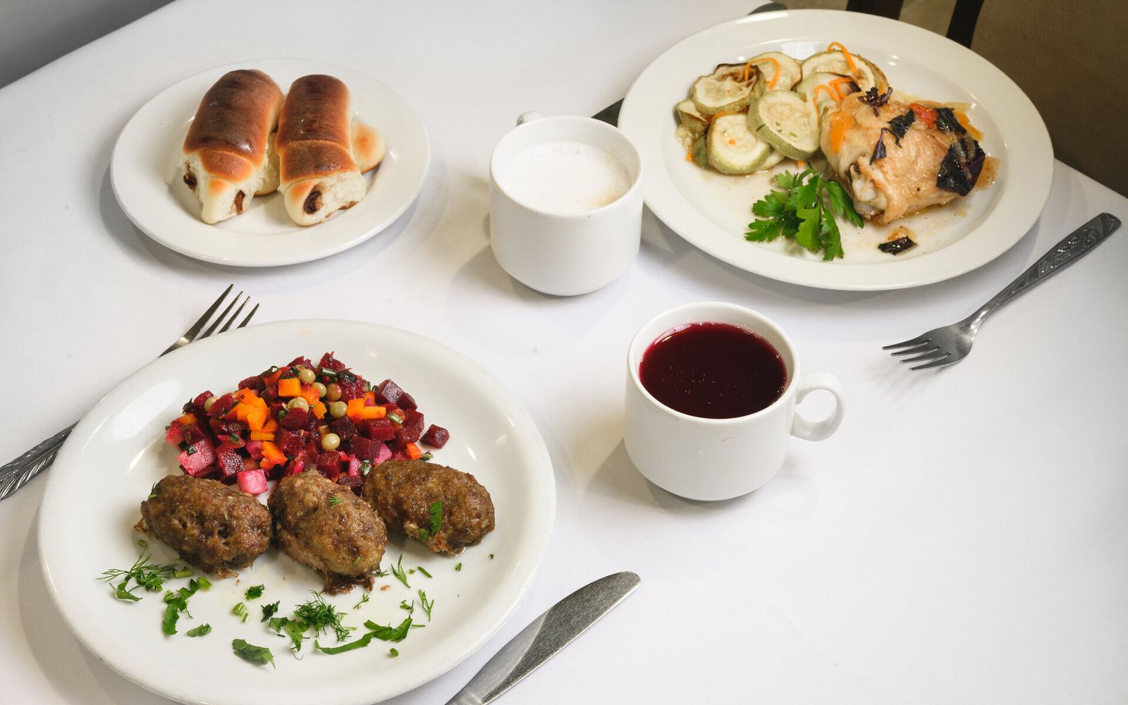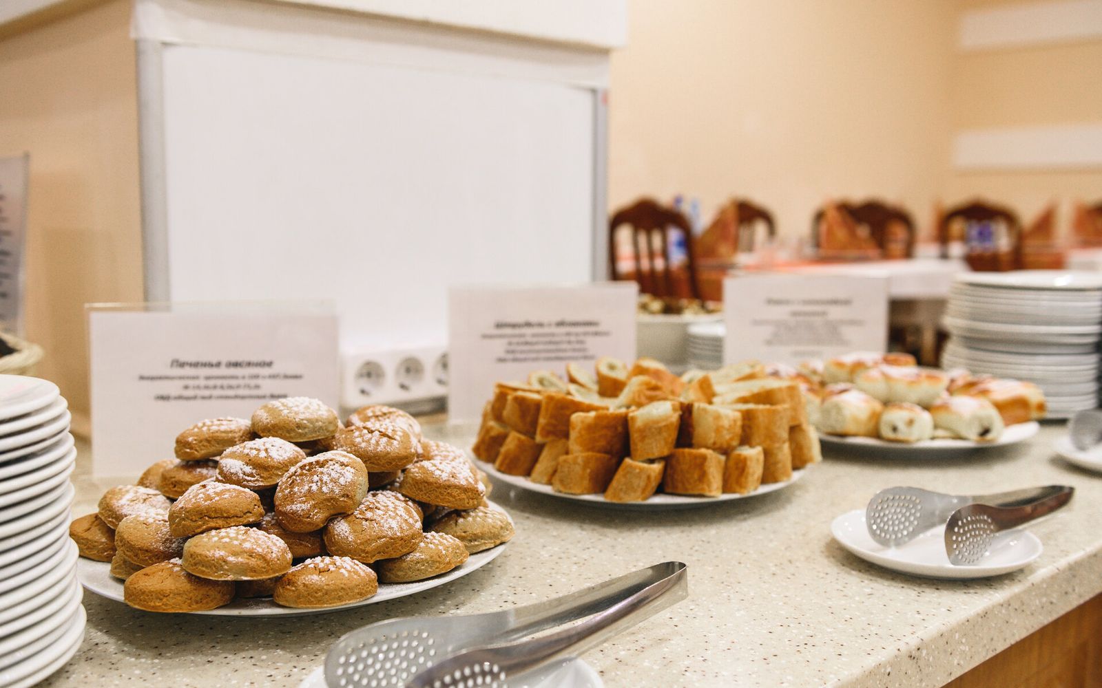В ежедневном меню всегда есть позиции для различных диет. Дополнительно гостям предлагается фиточаи, компоты, соки, чай, кофе, какао.