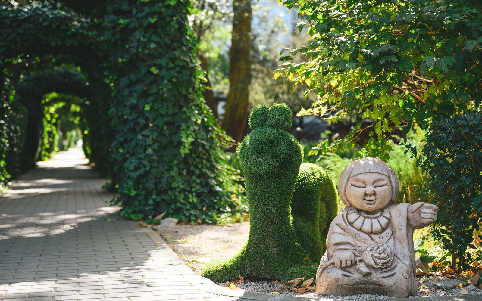 Эко-тропа на территории — отдельный лечебный фактор: розарий, лабиринт души, массажная тропа, хвойная и лавандовая лужайки, журчащий водопад. Прогулки по такой тропе сочетают аэрофитотерапию, ландшафтотерапию и релаксацию.