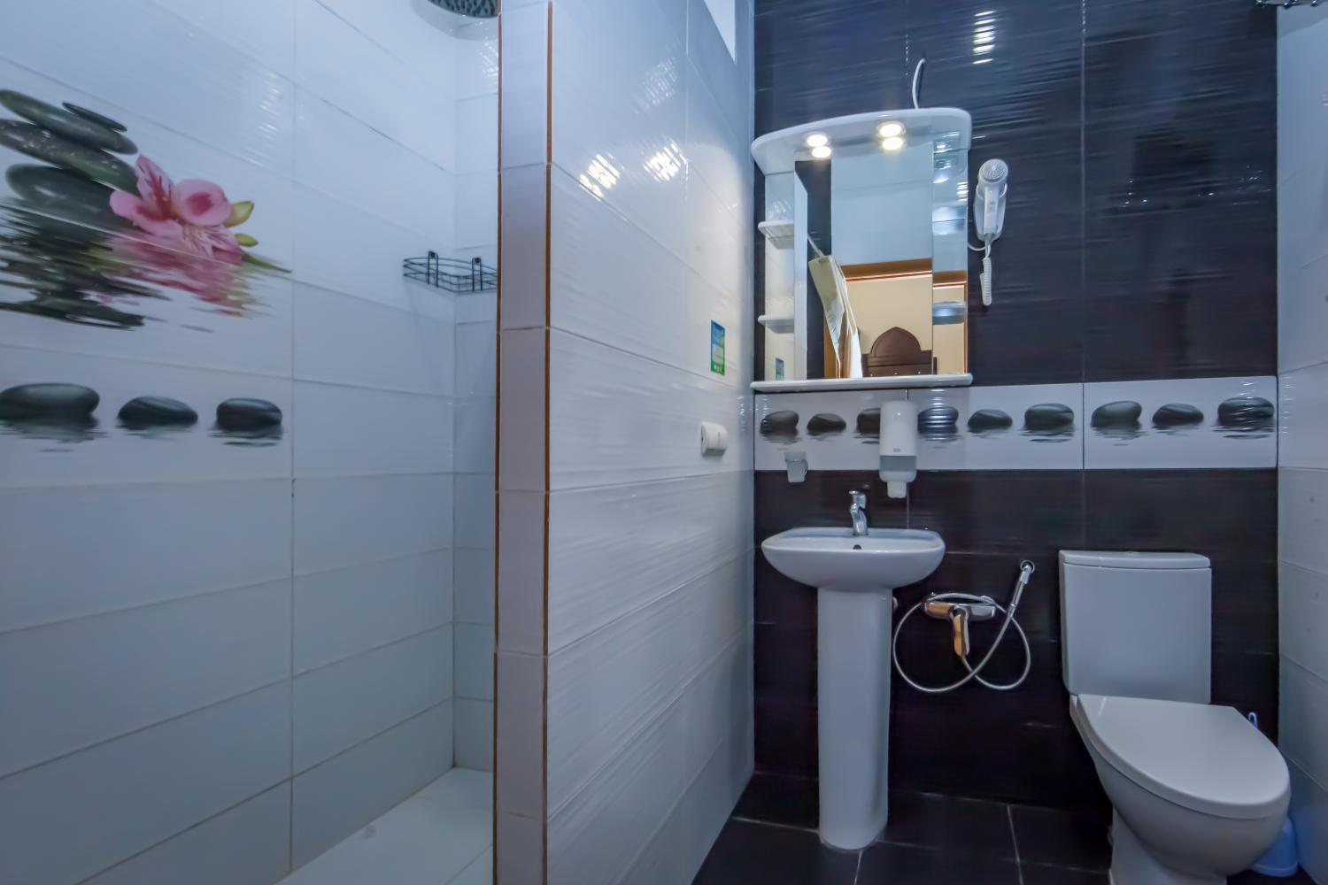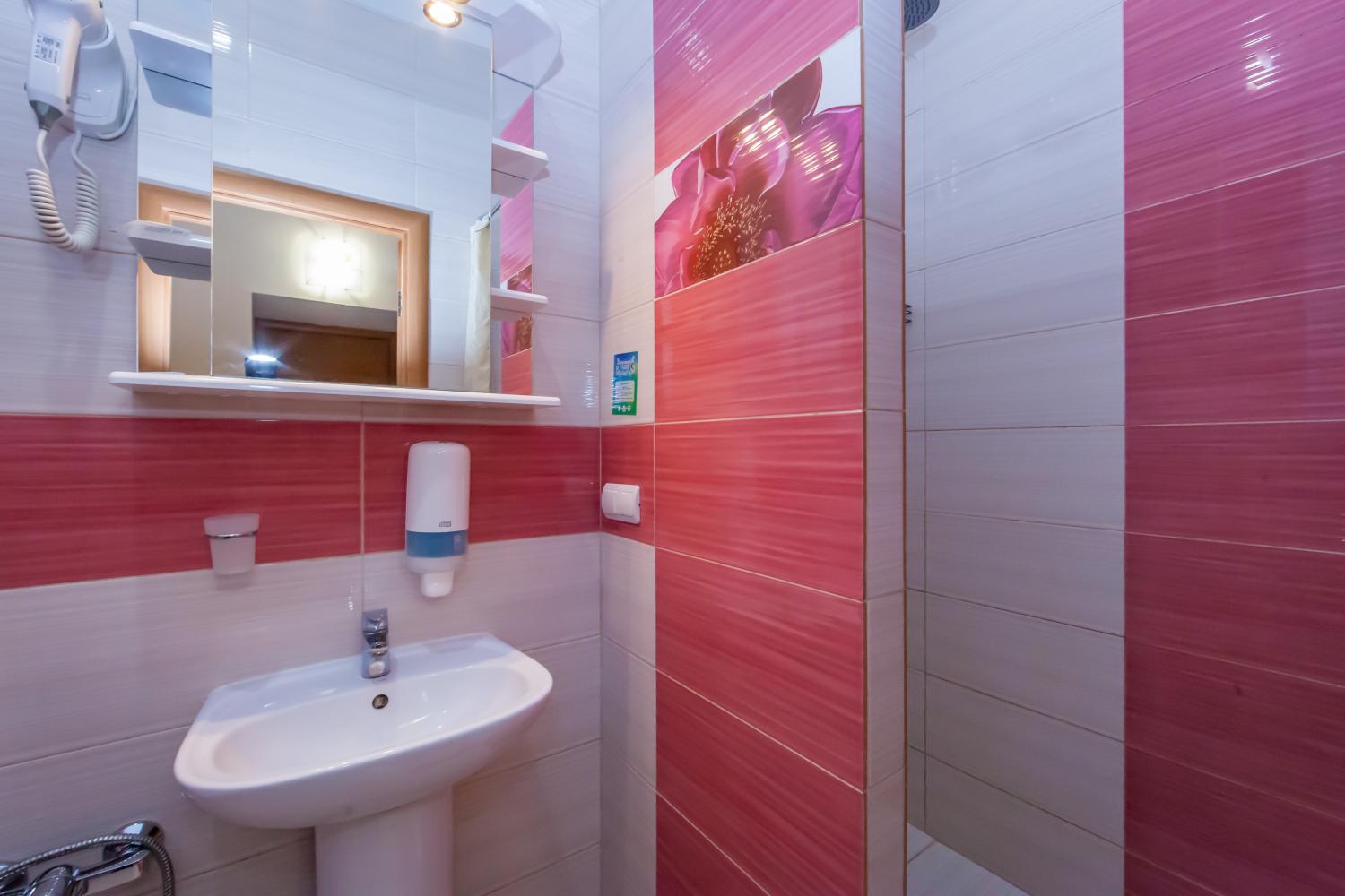 Санузел: Ванная комната с душевой кабиной, набор мини-парфюмерии.