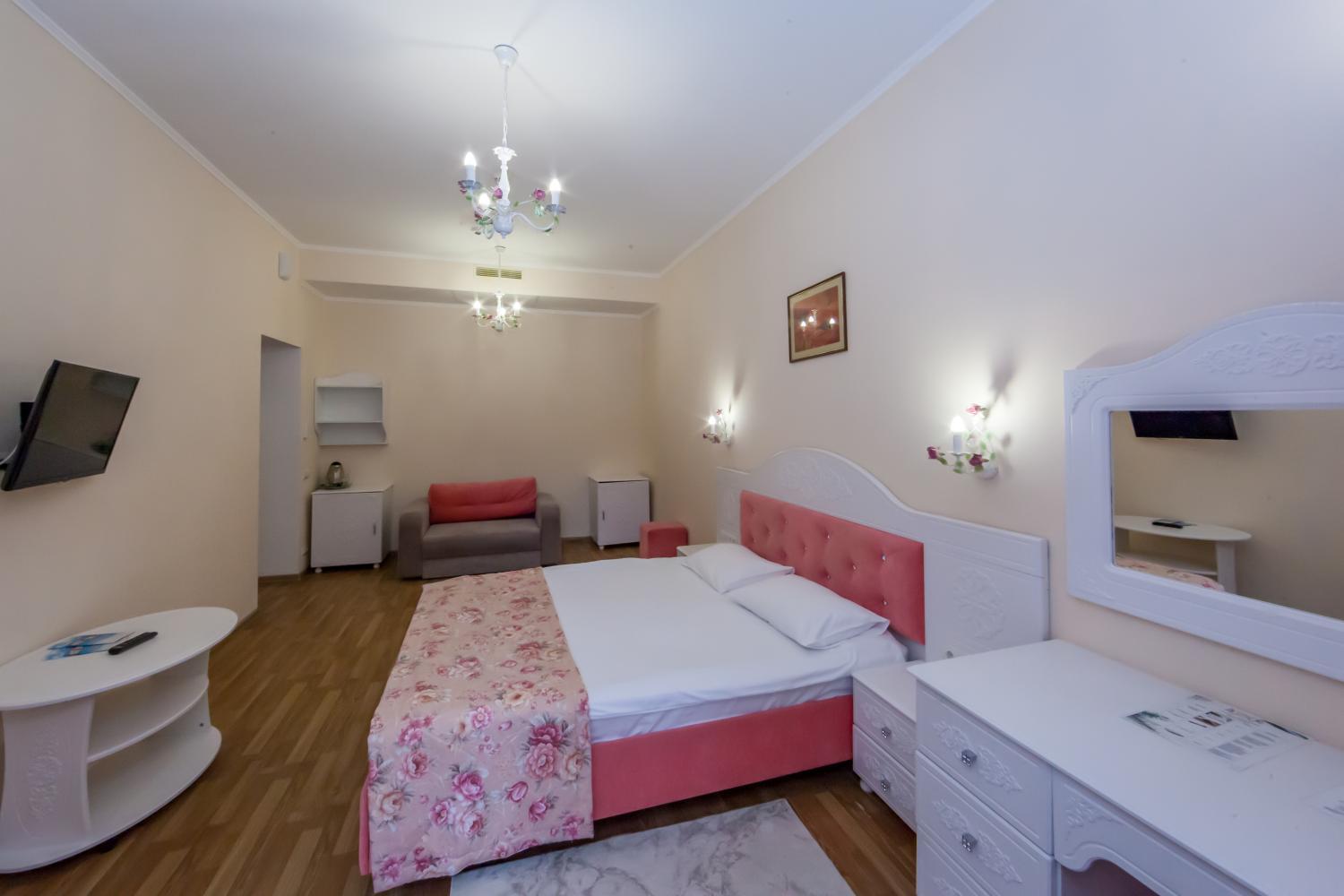 Мебель: Двуспальная кровать, мягкий раскладной диван.