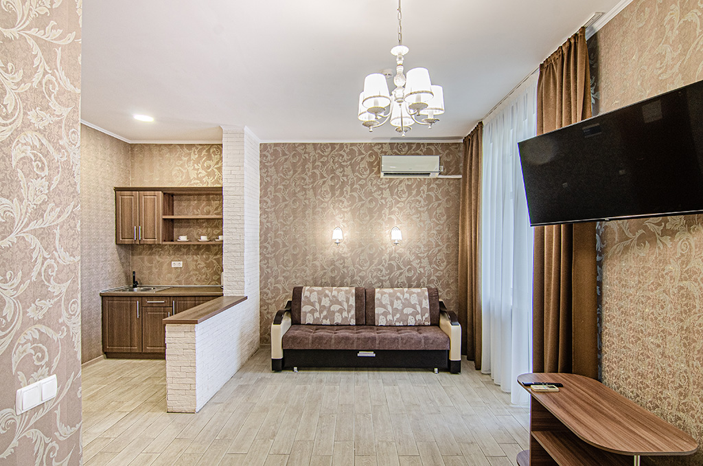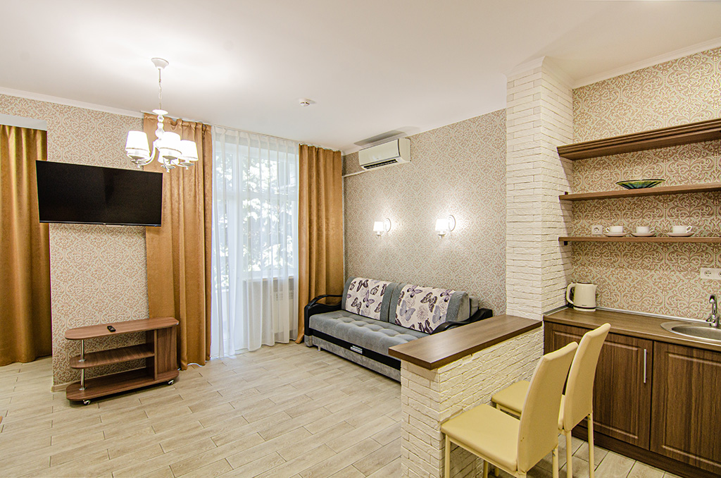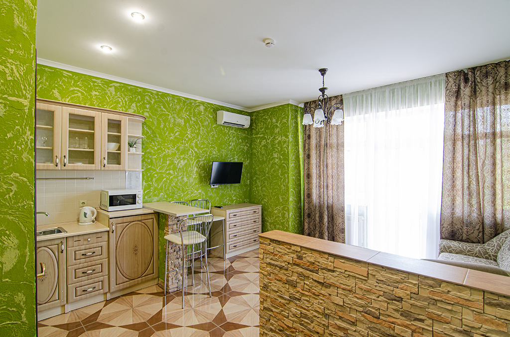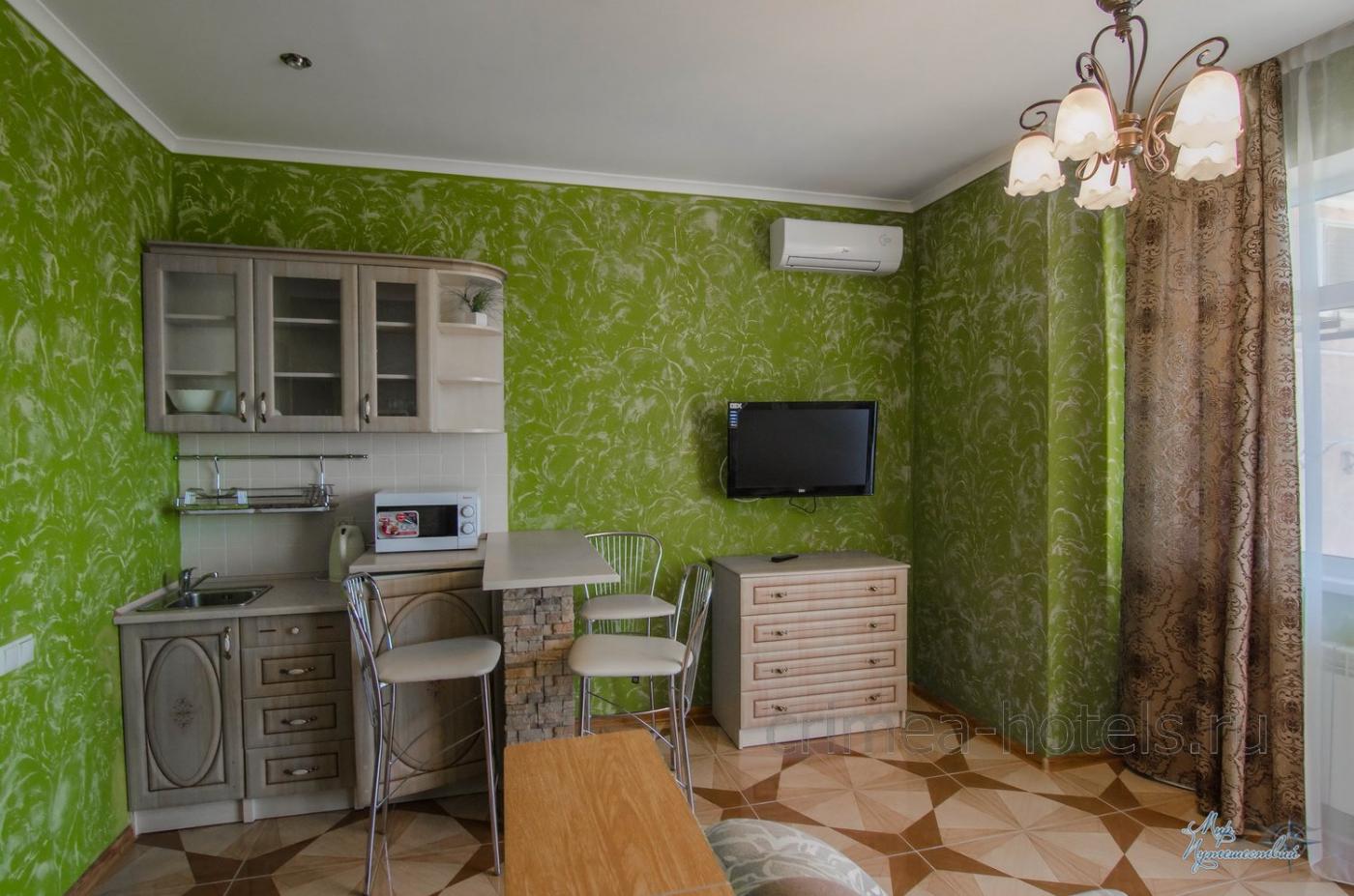 Оборудование: Телевизор, холодильник, кондиционер, микроволновка, чайник, посуда, раковина. Номер с хорошим ремонтом.