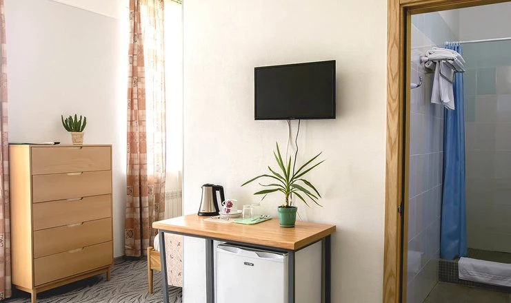 Оборудование: Кондиционер, сейф, телевизор, телефон, холодильник, электрочайник, чайный набор посуды, Wi-Fi.