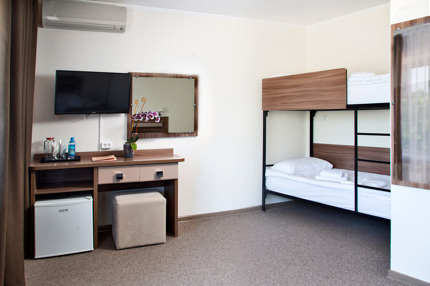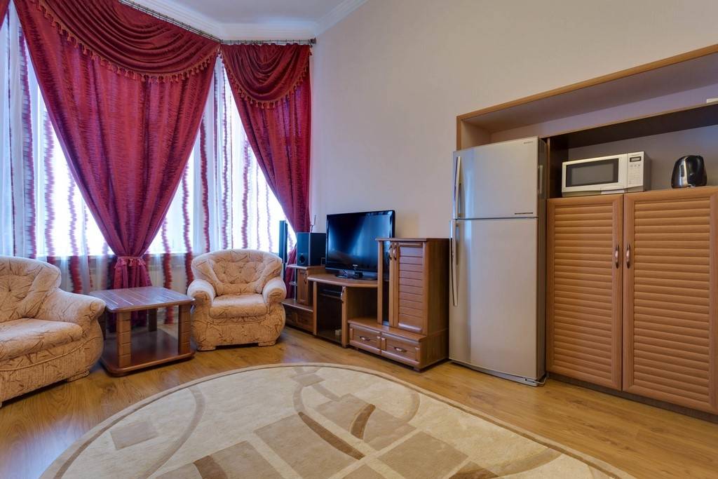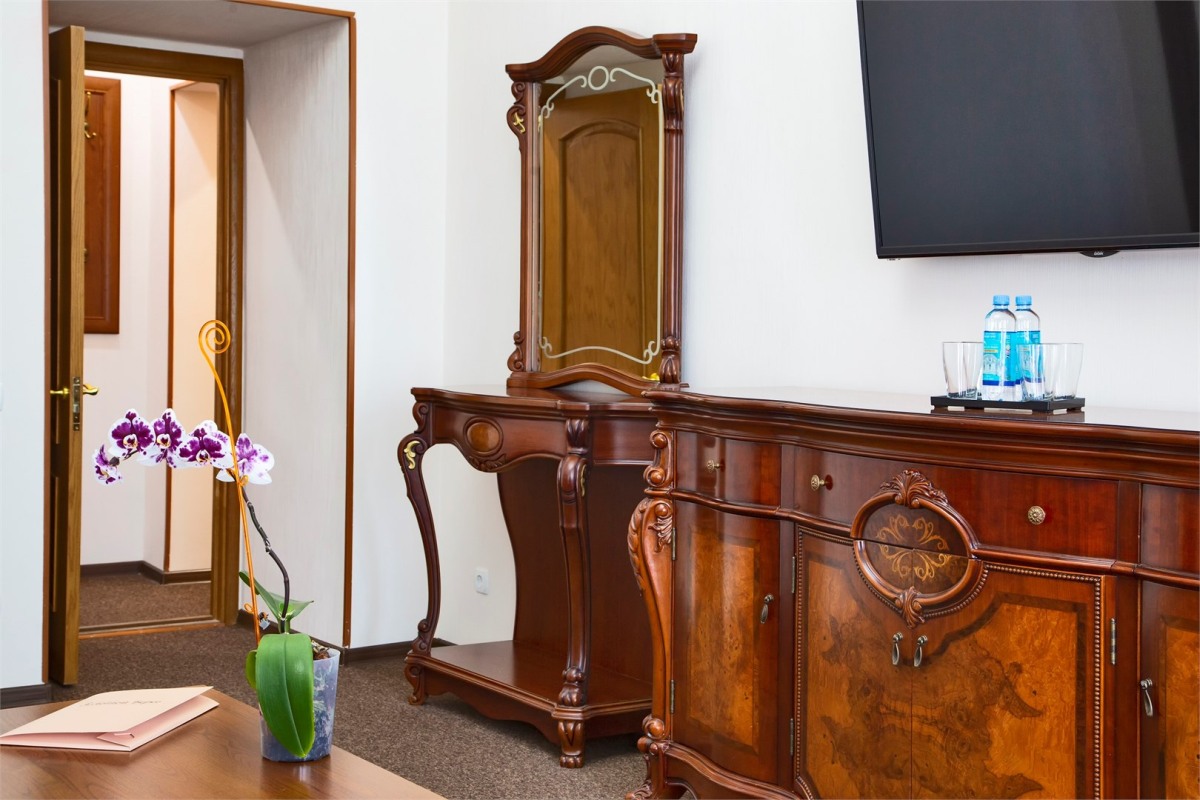 Оборудование: Два телевизора, холодильник, кондиционер, сейф, чайная станция, гладильная доска, утюг.