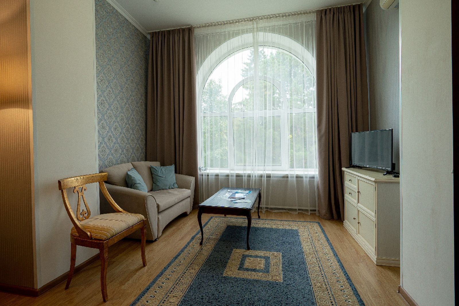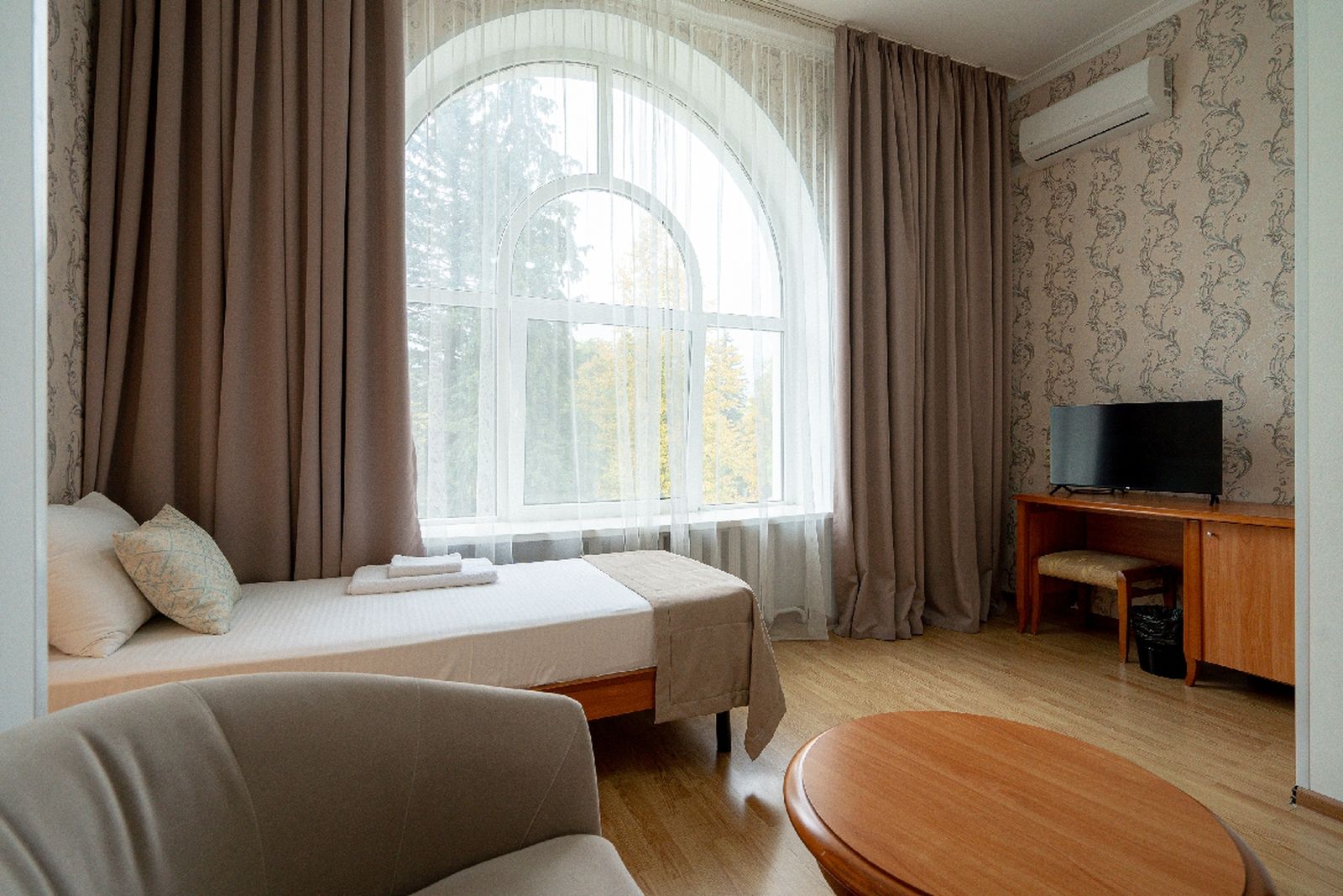 Достойная лечебная база: современное медицинское оборудование, бассейн с минеральной водой и собственная система минералопроводов.