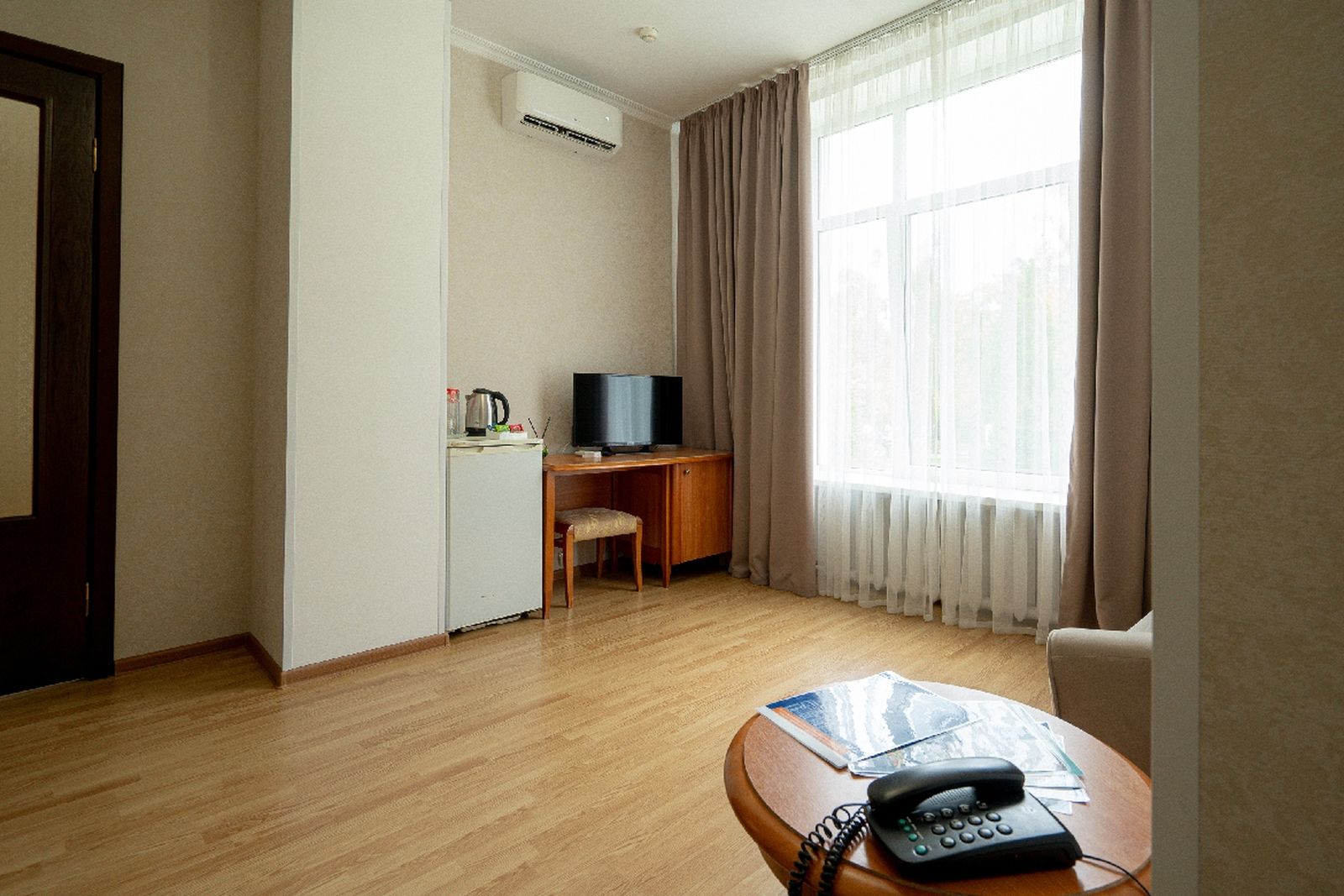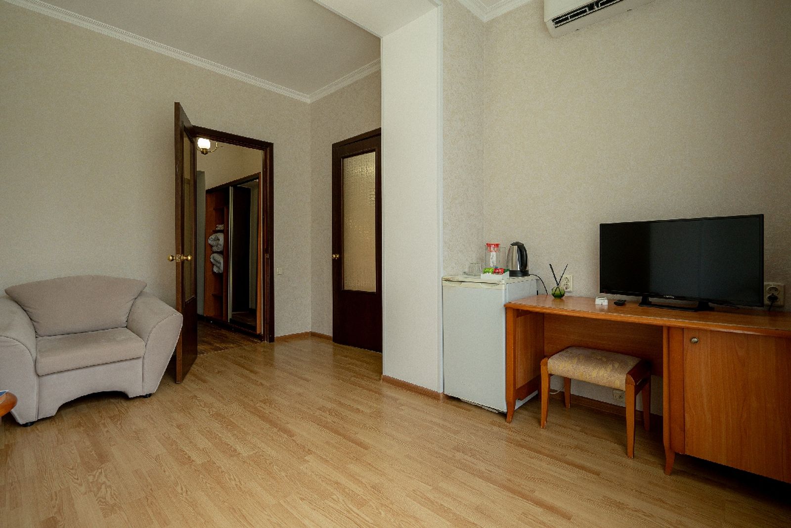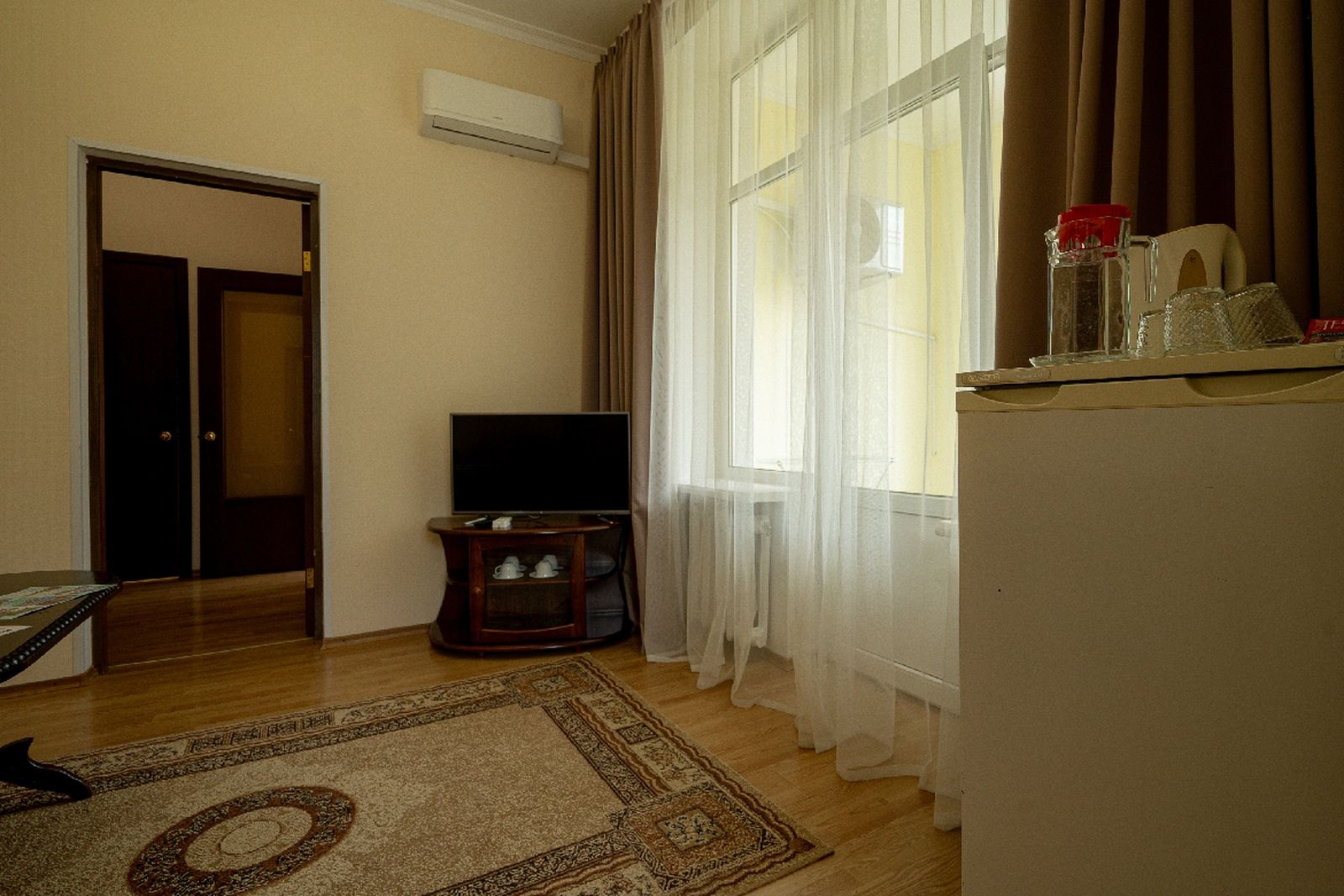 Оборудование: сплит-система, телевизор, телефон, холодильник, чайный набор посуды, электрочайник.