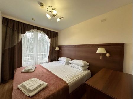 Развитая инфраструктура: два 8-этажных спальных корпуса на 400 мест, просторная столовая, лечебно-консультативное отделение и отделение водолечения.