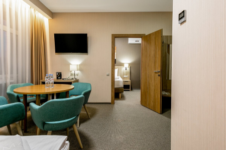 Оборудование: кондиционер, мини-холодильник, телевизор ЖК, телефон, чайный набор посуды, электрочайник.