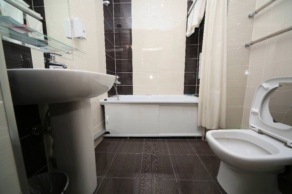 Санузел: Ванна, туалет, индивидуальные средства гигиены.