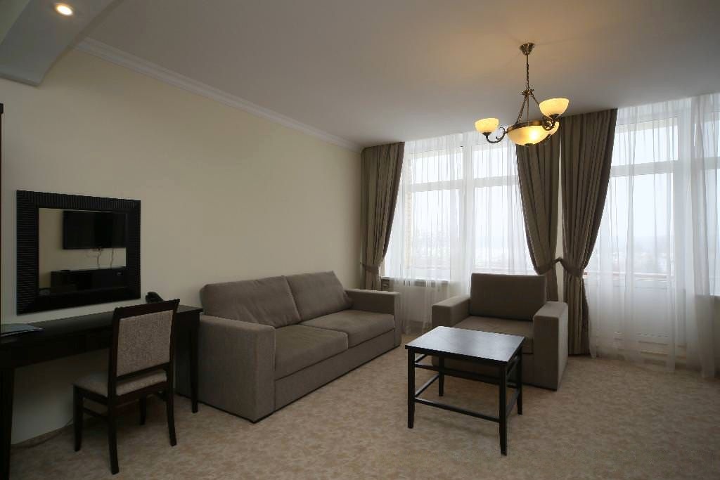 Номерной фонд отеля находится в современных корпусах, соединенных утепленными переходами, что обеспечивает удобство передвижения гостей в любую погоду. Все номера оборудованы современными туалетными комнатами, стильным интерьером и прочими удобствами для комфортного проживания. Балконы, выходящие из каждого номера, позволяют наслаждаться умиротворенными видами на окружающую природу.