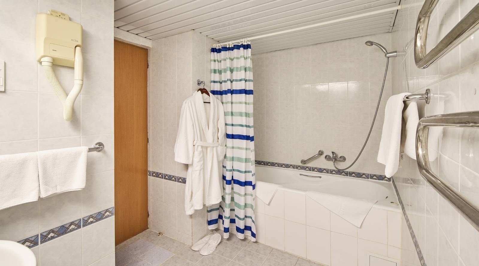 Санузел: с душем или ванной, туалетные принадлежности, фен.