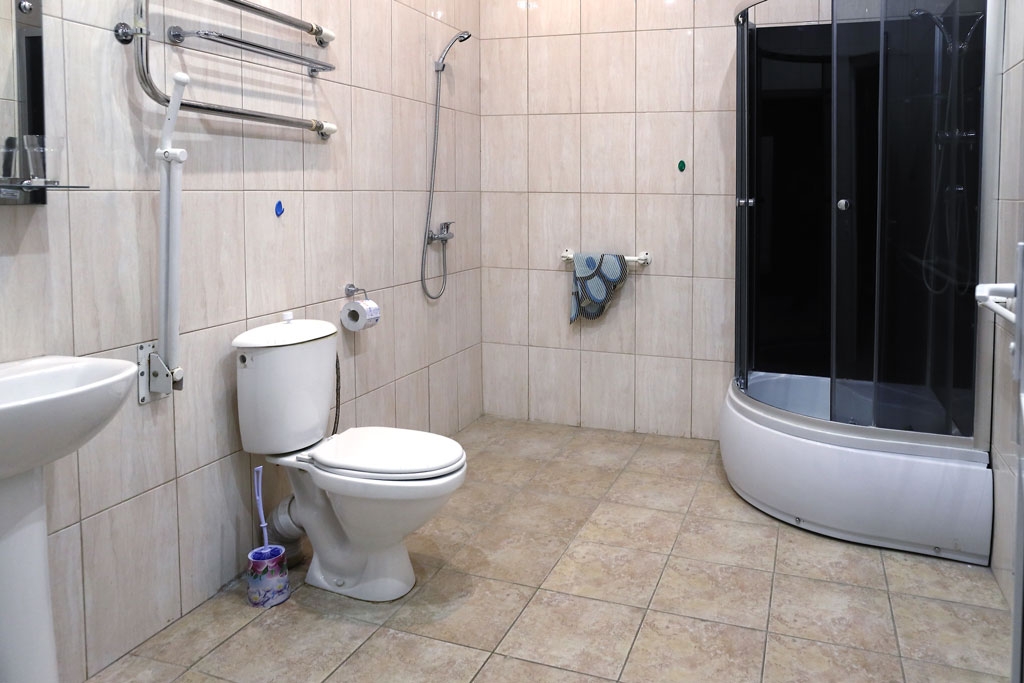 Проживание включает размещение в старинном и тщательно отреставрированном здании здравницы. В трёхэтажном жилом корпусе предусмотрены пассажирский лифт и лифт для удобства транспортировки больных. Отапливаемые наземные переходы обеспечивают комфортное перемещение между клубом, столовой, спортивным и лечебным корпусами.