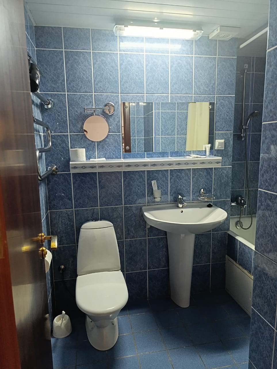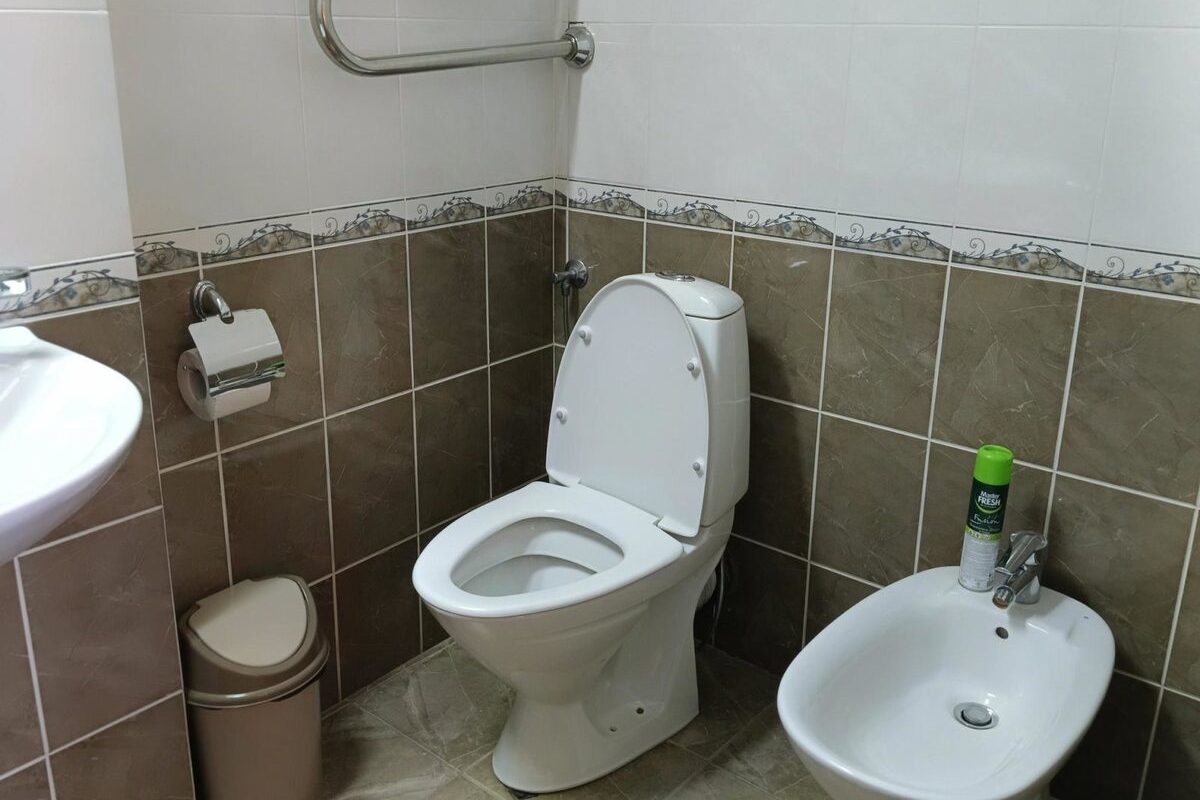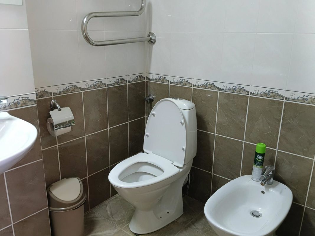 Санузел: биде, с ванной, тапочки, туалетные принадлежности, фен, халат.