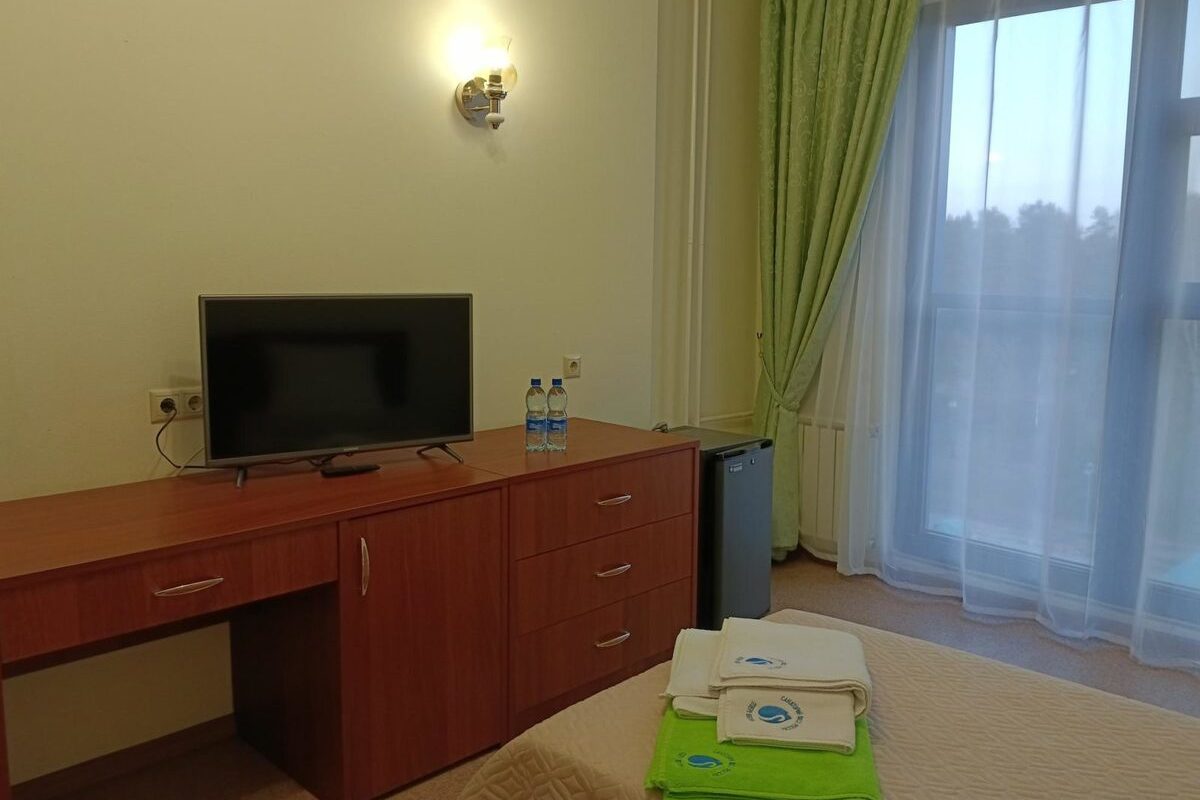 Среди удобств санатория - комфортабельные номера, крытый бассейн (на стадии реконструкции), спортивный комплекс с волейбольными и баскетбольными залами, тренажерный зал, бильярд, настольный теннис и боулинг. Гостям доступны прокат спортивного инвентаря (ролики, велосипеды, лыжи, коньки), лодочная станция с лодками и катамаранами, библиотека, кинозал, конференц-зал, охраняемая стоянка для автомобилей и собственный оборудованный пляж на озере.