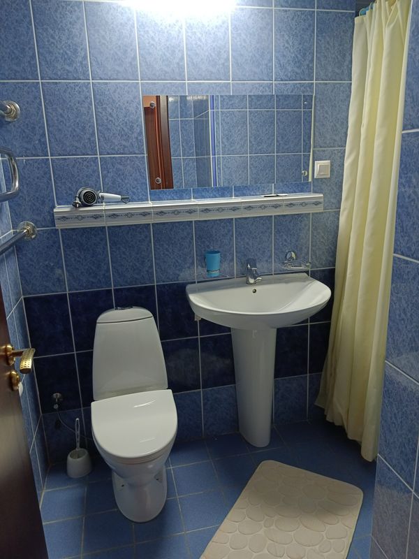 Санузел: с ванной, тапочки, туалетные принадлежности, фен, халат.