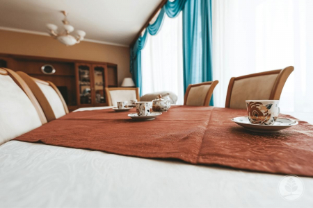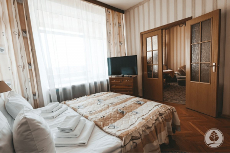 В здравнице доступны различные услуги для отдыха и восстановления. Здесь есть массажный кабинет, SPA-салон, парикмахерская и косметический кабинет. Огромный закрытый бассейн с размерами 25 м на 18 м приглашает гостей освежиться в любое время года. Также можно посетить современную библиотеку, предлагающую широкий выбор литературы.
