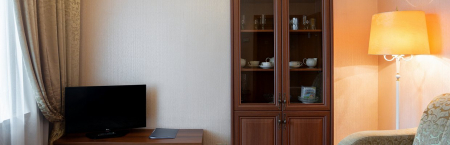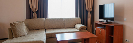 Оборудование: мини-холодильник, набор посуды, телевизор, телефон.