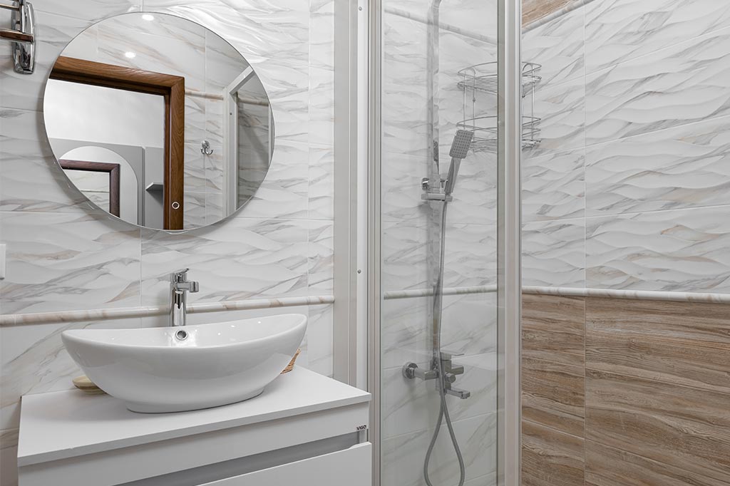 Санузел: с душем или ванной, тапочки, туалетные принадлежности, фен, халат.