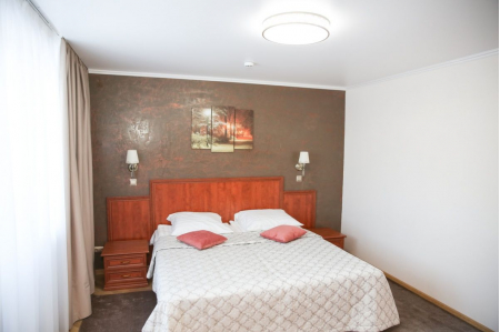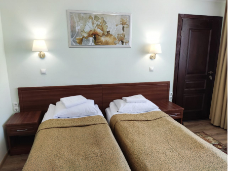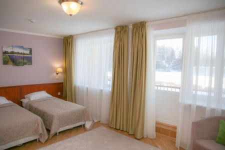 Красивые и ухоженная в 7 гектаров территория здравницы окружена массивом смешанного леса, который пересекают уютные прогулочные тропинки, приглашая гостей на неспешные прогулки. Комплекс включает 5 жилых корпусов и 2 коттеджа, а также лечебный корпус и лечебно-плавательный комплекс, создавая идеальные условия для отдыха и оздоровления.