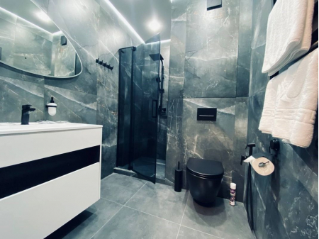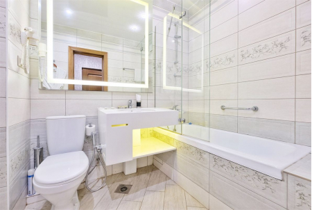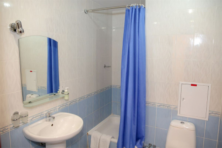 Санузел: Совмещенный санузел с душем, умывальником и унитазом. Предоставляется комплект полотенец (3 вида), средства гигиены в дозаторах.