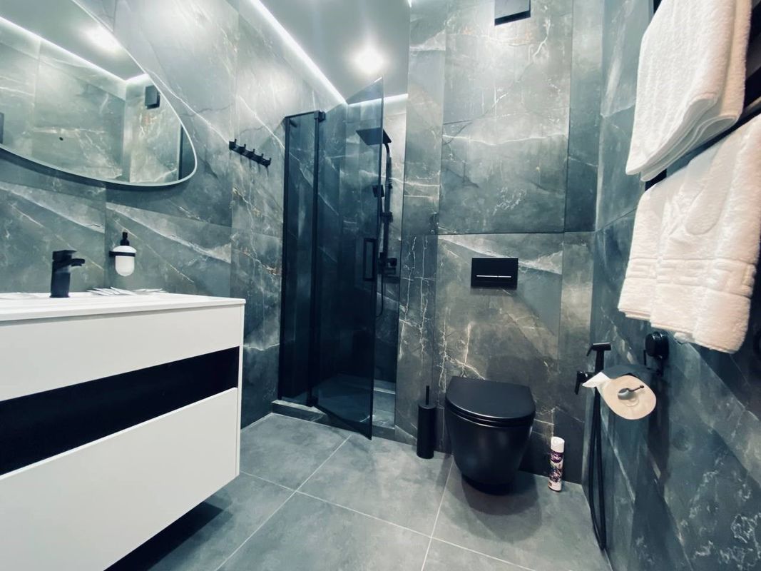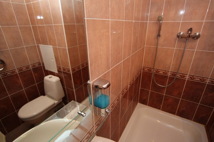 Санузел: Совмещенный санузел с душем, умывальником и унитазом. Предоставляется комплект полотенец (3 вида), средства гигиены в дозаторах.