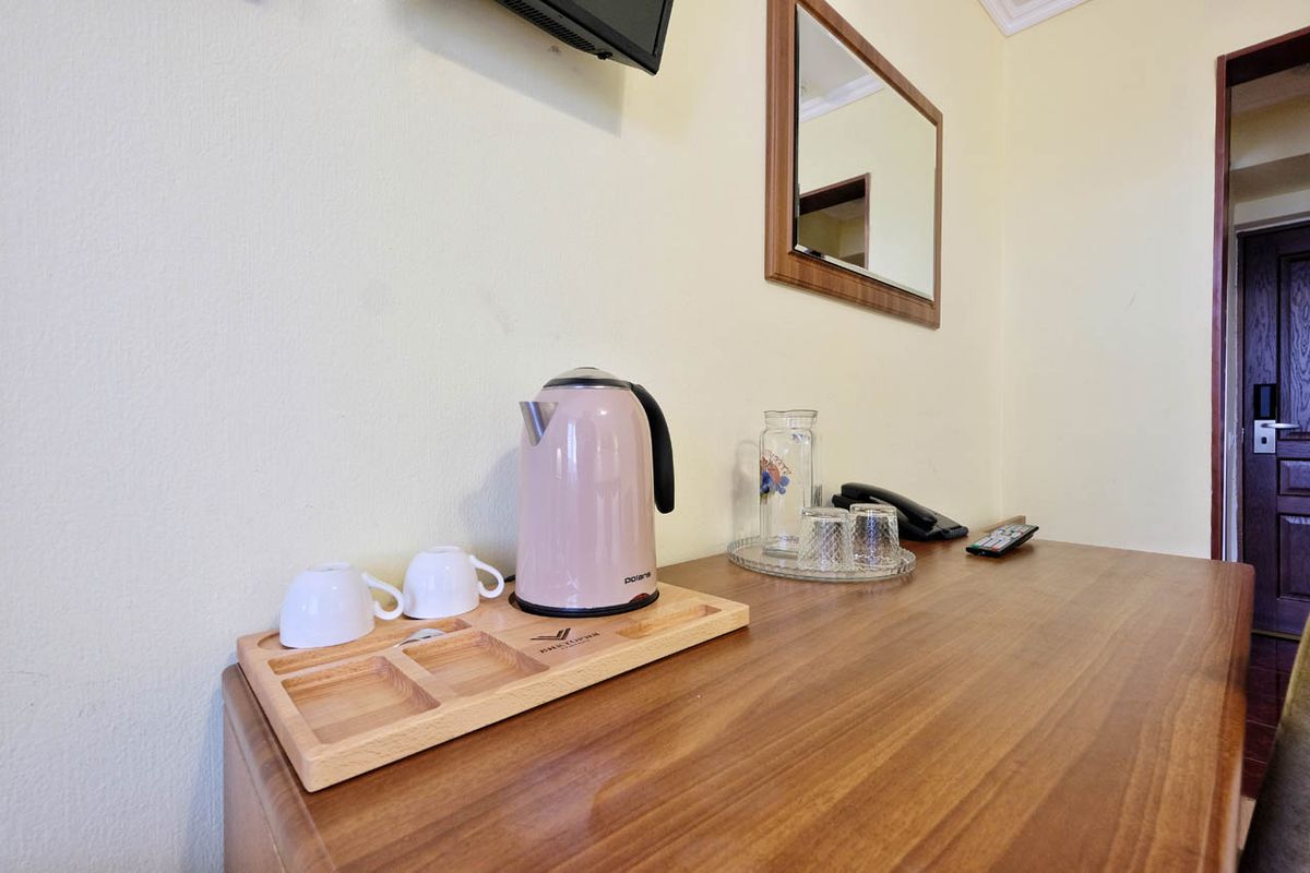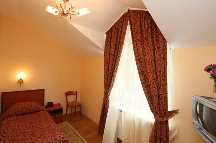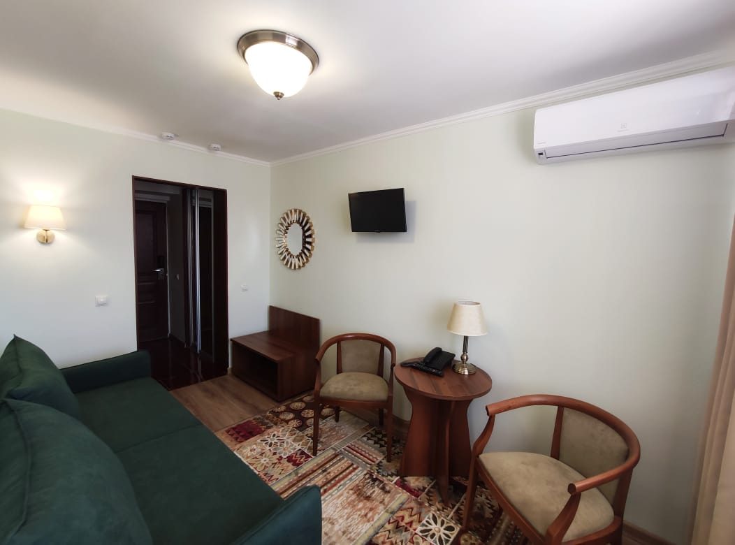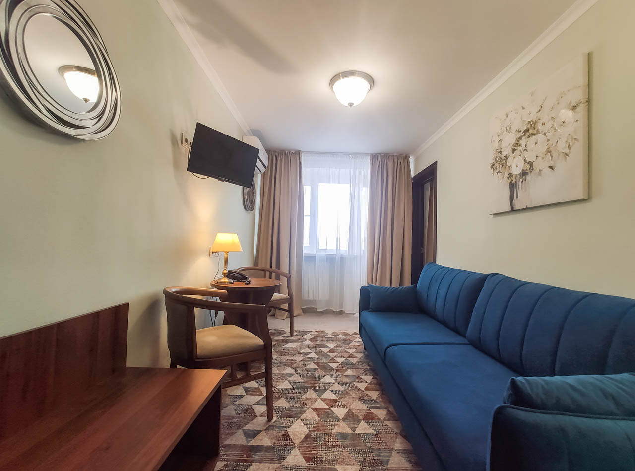 Оборудование: Телевизор, холодильник, телефон, электрочайник, сейф, доступ в интернет Wi-Fi, зеркало, комплект посуды (фужеры, рюмки, чайный сервиз, приборы).