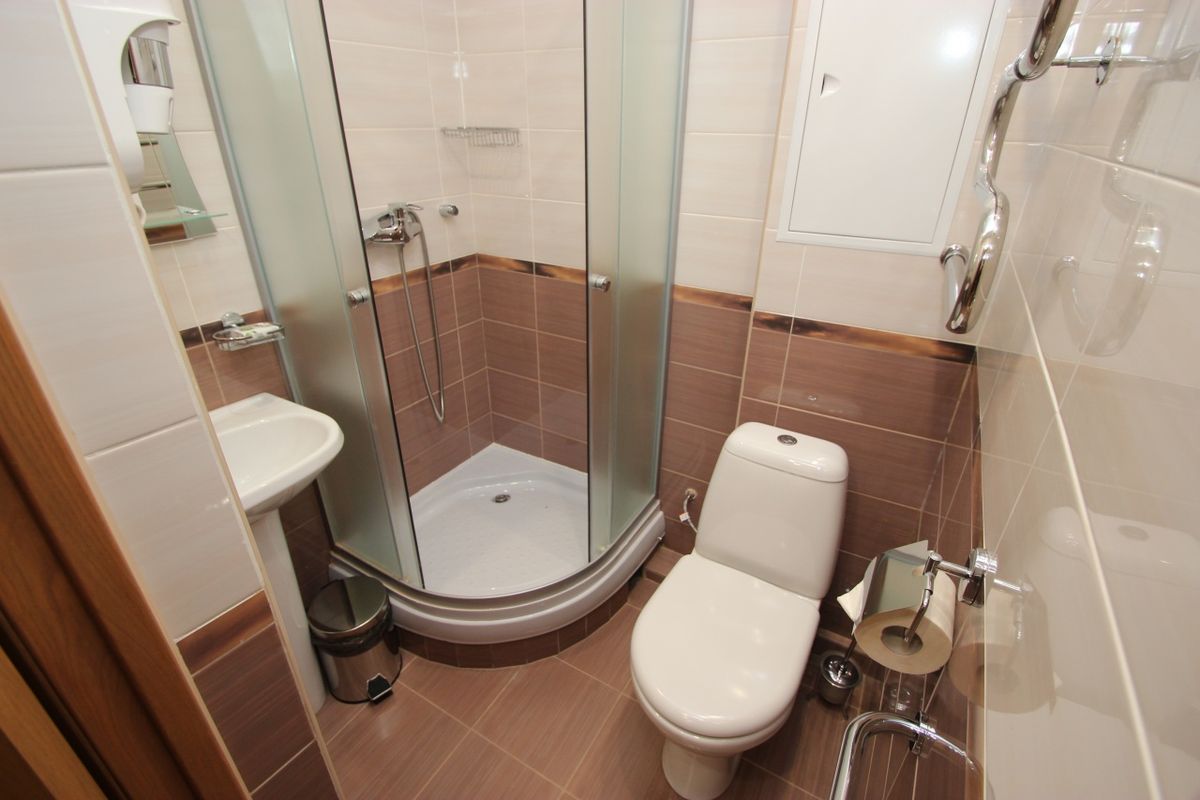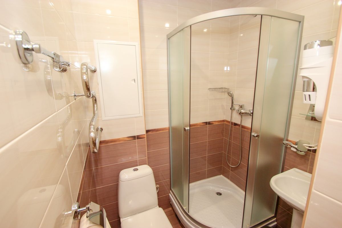 Санузел: Совмещенный санузел с душевой кабиной, умывальником и унитазом. Предоставляется комплект полотенец (3 вида), средства гигиены в дозаторах.