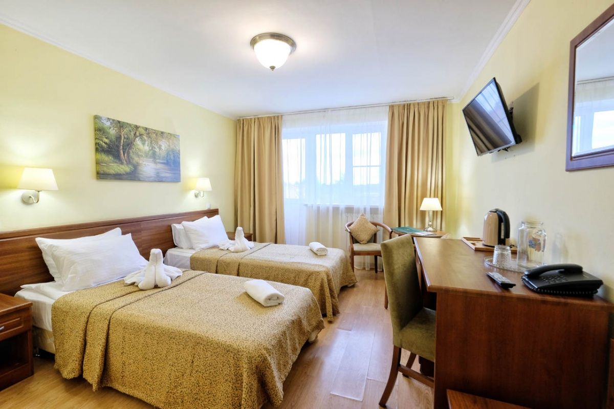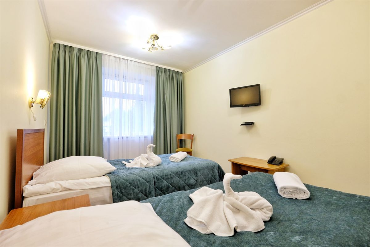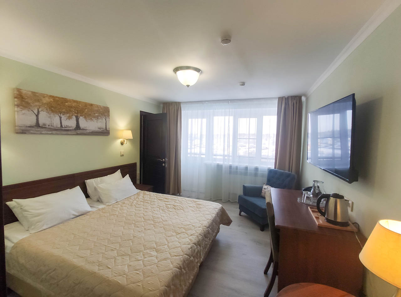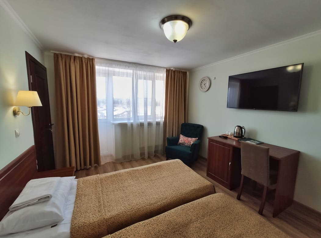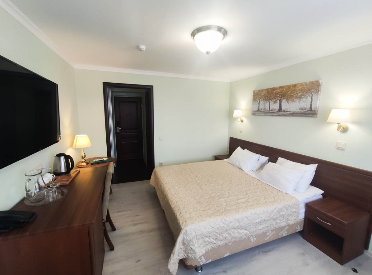 Оборудование: Два телевизора, холодильник, телефон, фен, электрочайник, доступ в интернет Wi-Fi, два зеркала, комплект посуды (графин, 2 стакана, чайная пара).