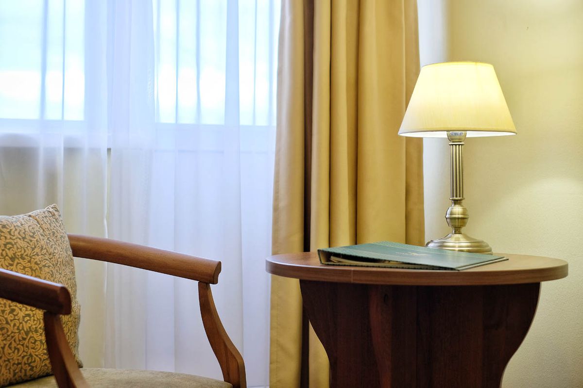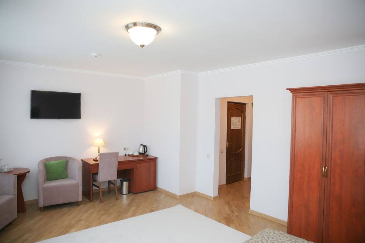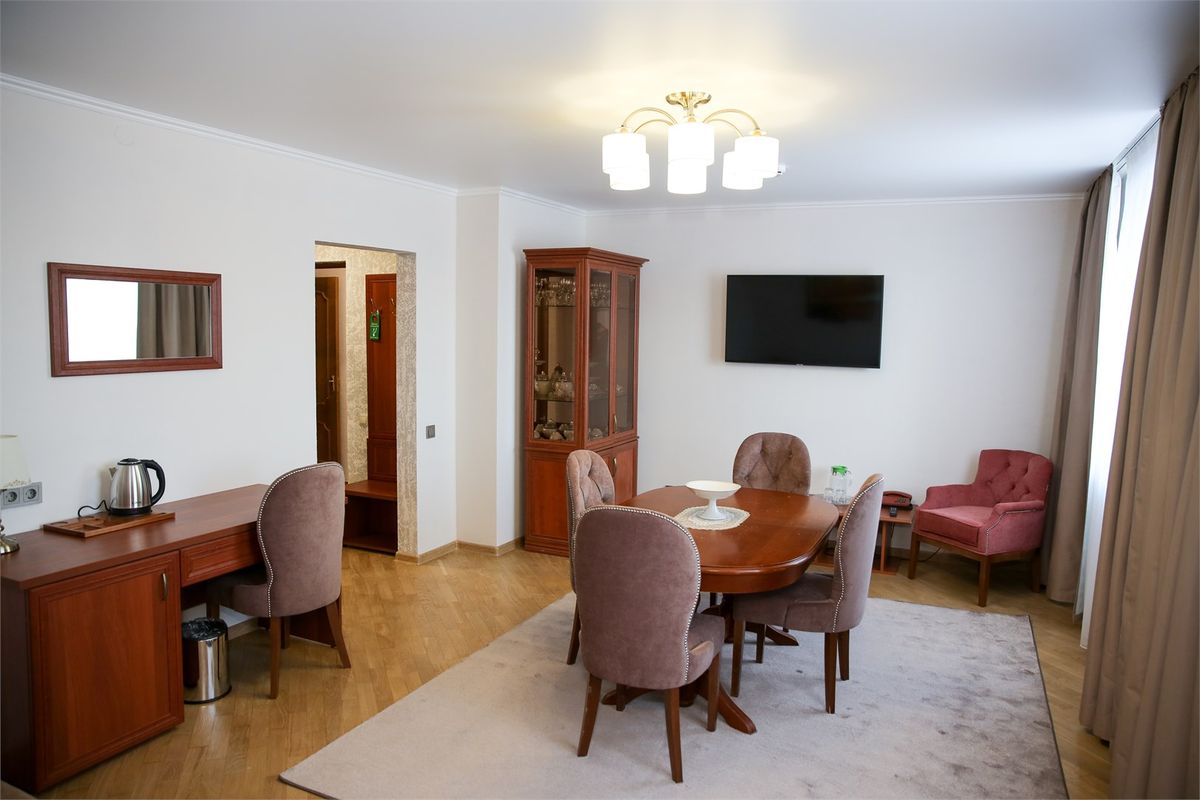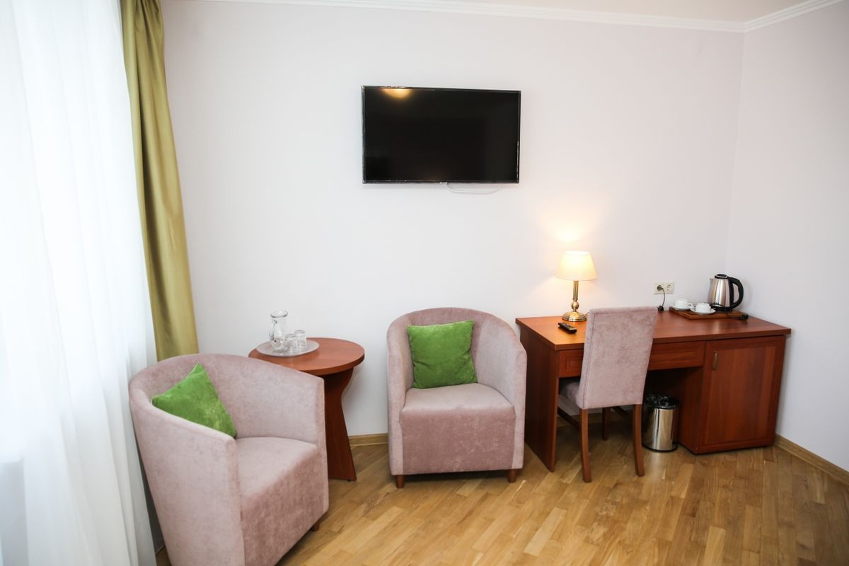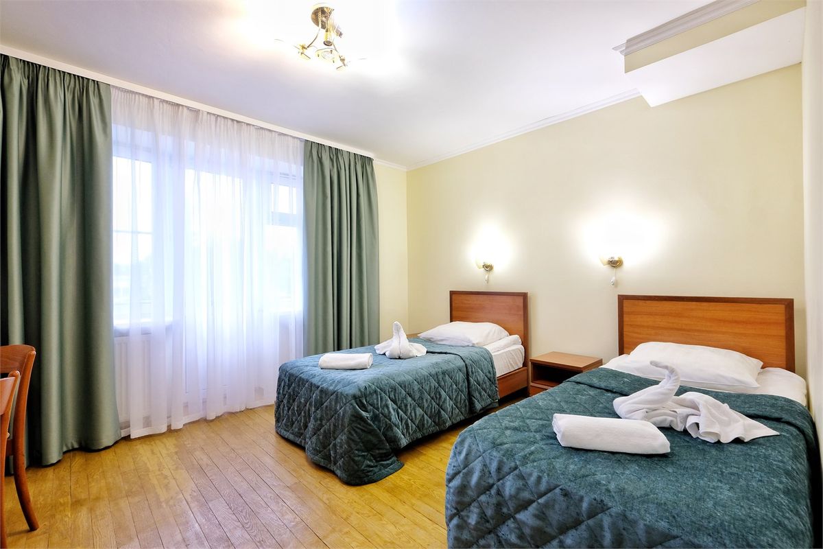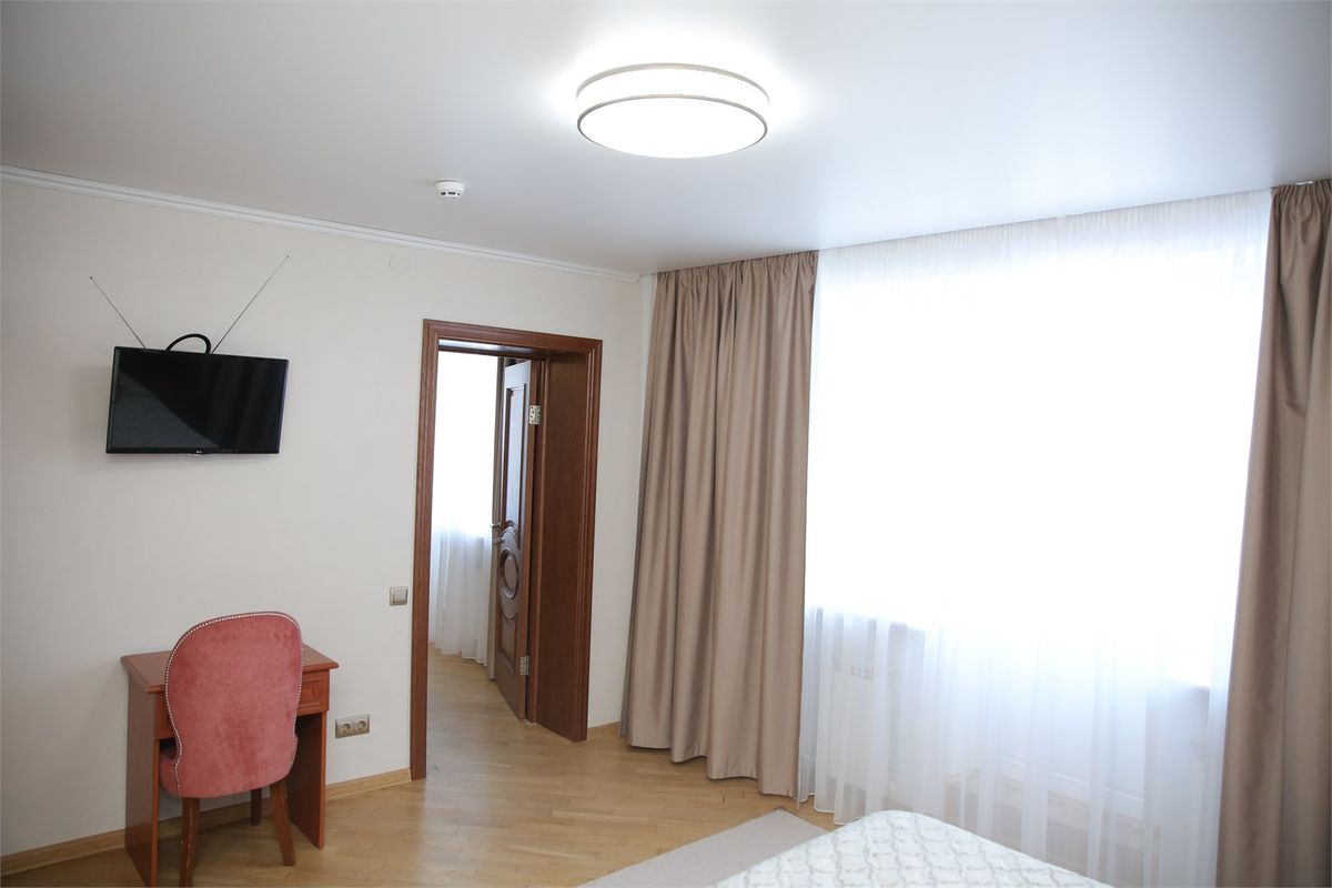 Оборудование: Два телевизора, холодильник, телефон, фен, электрочайник, доступ в интернет Wi-Fi, два зеркала, комплект посуды (графин, 2 стакана, чайная пара).