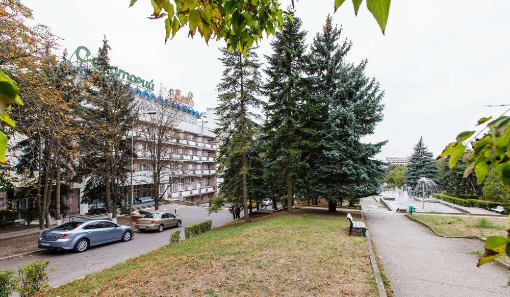 Прекрасный санаторий для поправки здоровья... Хорошая лечебная база. Свой крытый бассейн, соединенный переходом с основными корпусами. Разнообразное заказное меню. Бесплатная доставка на микроавтобусе в городскую грязелечебницу. Большой киноконцертный зал. Ежевечерние дискотеки. Приветливый персонал. Удобное расположение - всего в 5 минутах пешком до парка «Цветник».