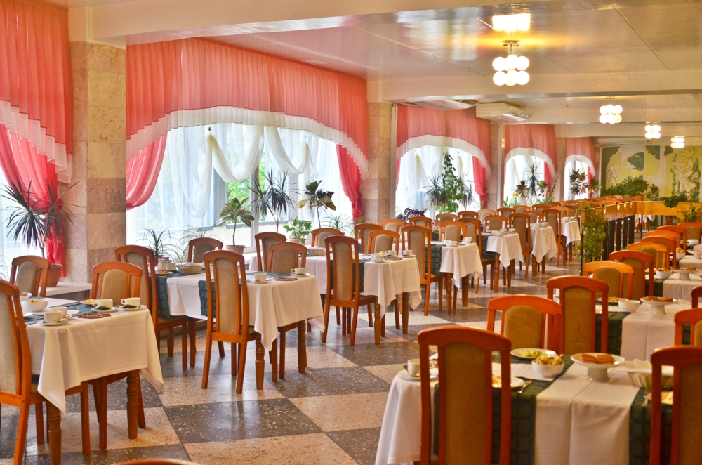 Питание... Конечно, когда едешь в санаторий, ждать высокой кухни не стоит. Стол от номера 2 до 7 всем в помощь. Но, в столовой, если испачкали скатерть, ее меняют раз в неделю. Поэтому ешьте аккуратнее, иначе будете сидеть с пятнами на белой скатерти неделю в наказание. Неудобно, когда ты ещё одно блюдо не съел, а тебе уже второе несут. В итоге, как тут не запачкать скатерть, когда за столом 4 человека и все 12 тарелок уже на столе кучей толпятся? Та же беда с забором тарелок. Как тут оставить скатерть белоснежной? При всем желании и уважении, как не старайся, а испачкаешь.