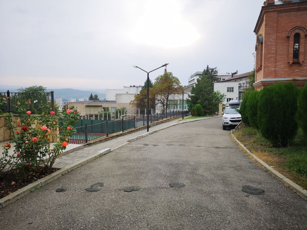 Находится в старом городе, у подножья Машук. Тишина по вечерам. Машины не ездят сутками под окнами.
