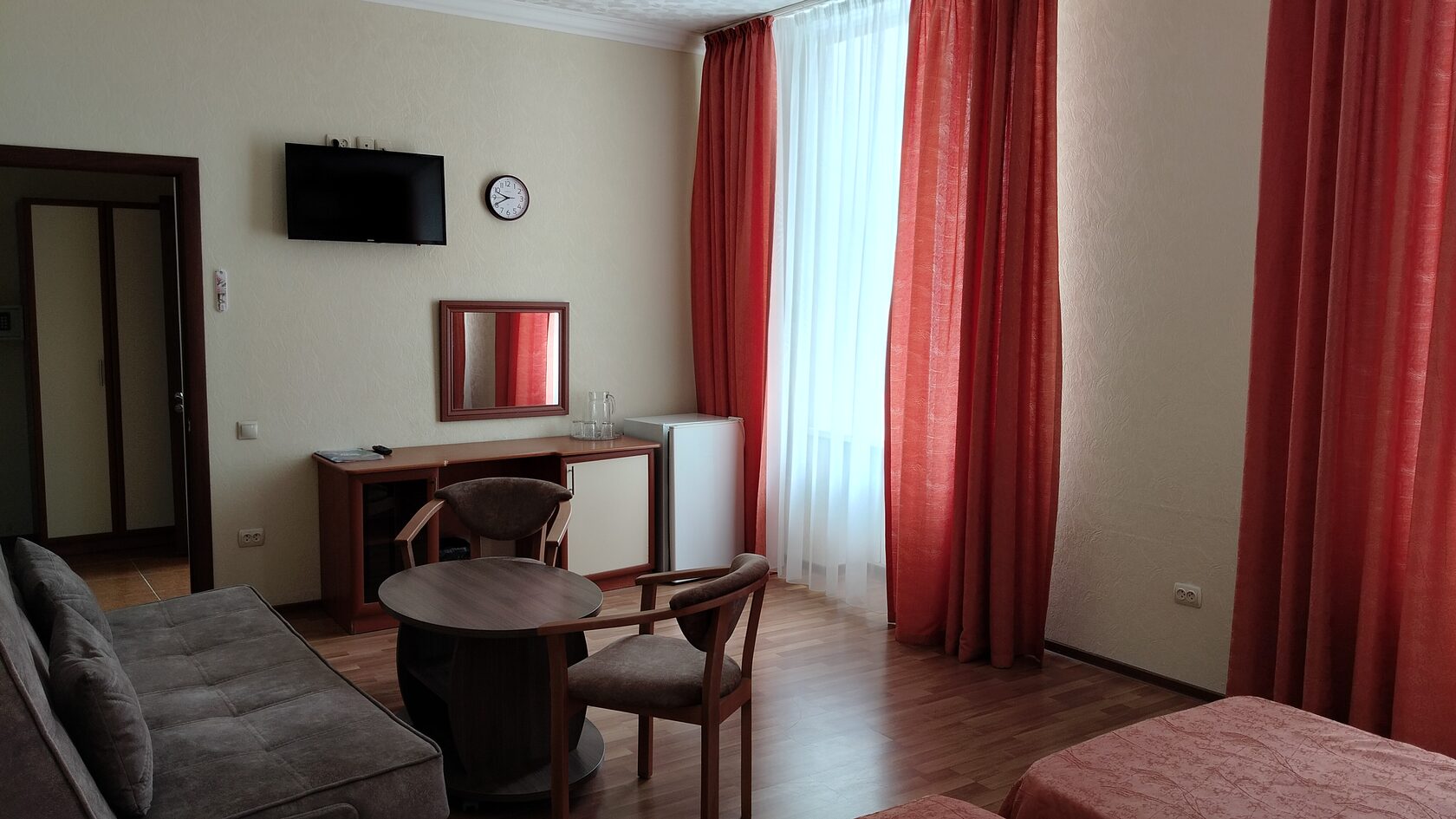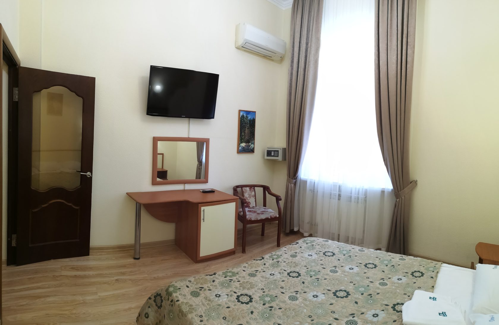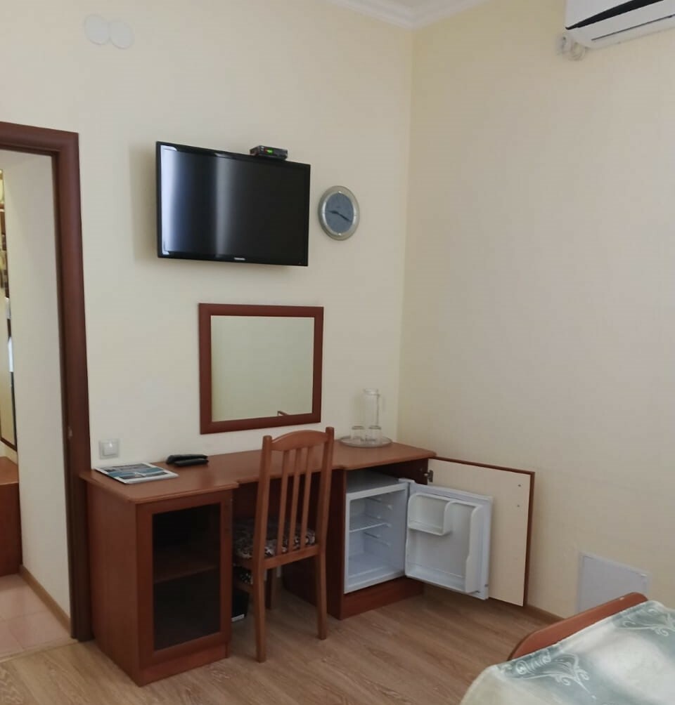 Оборудование: кондиционер, мини-холодильник, сейф, телевизор, телефон, чайный набор посуды, электрочайник.